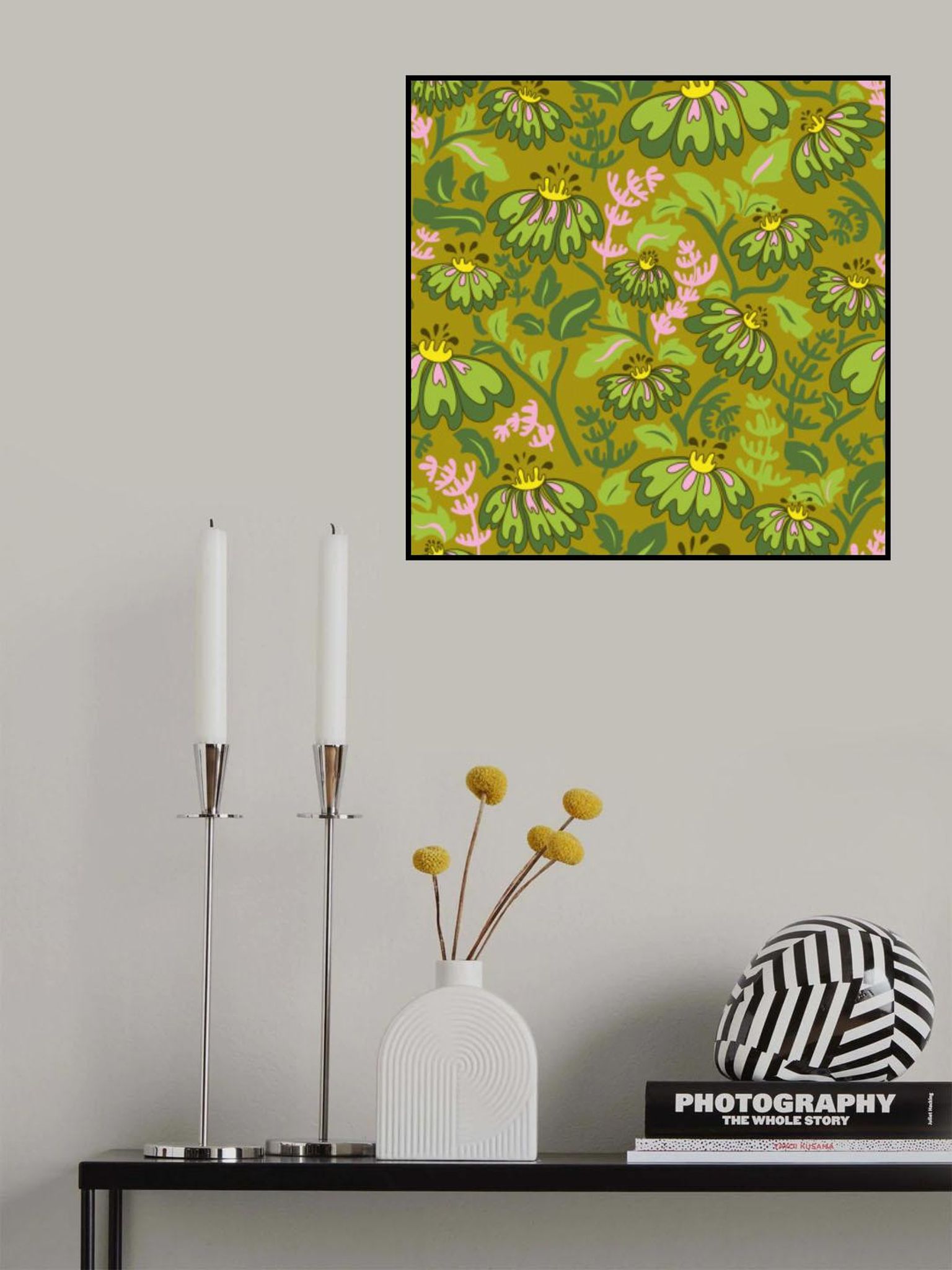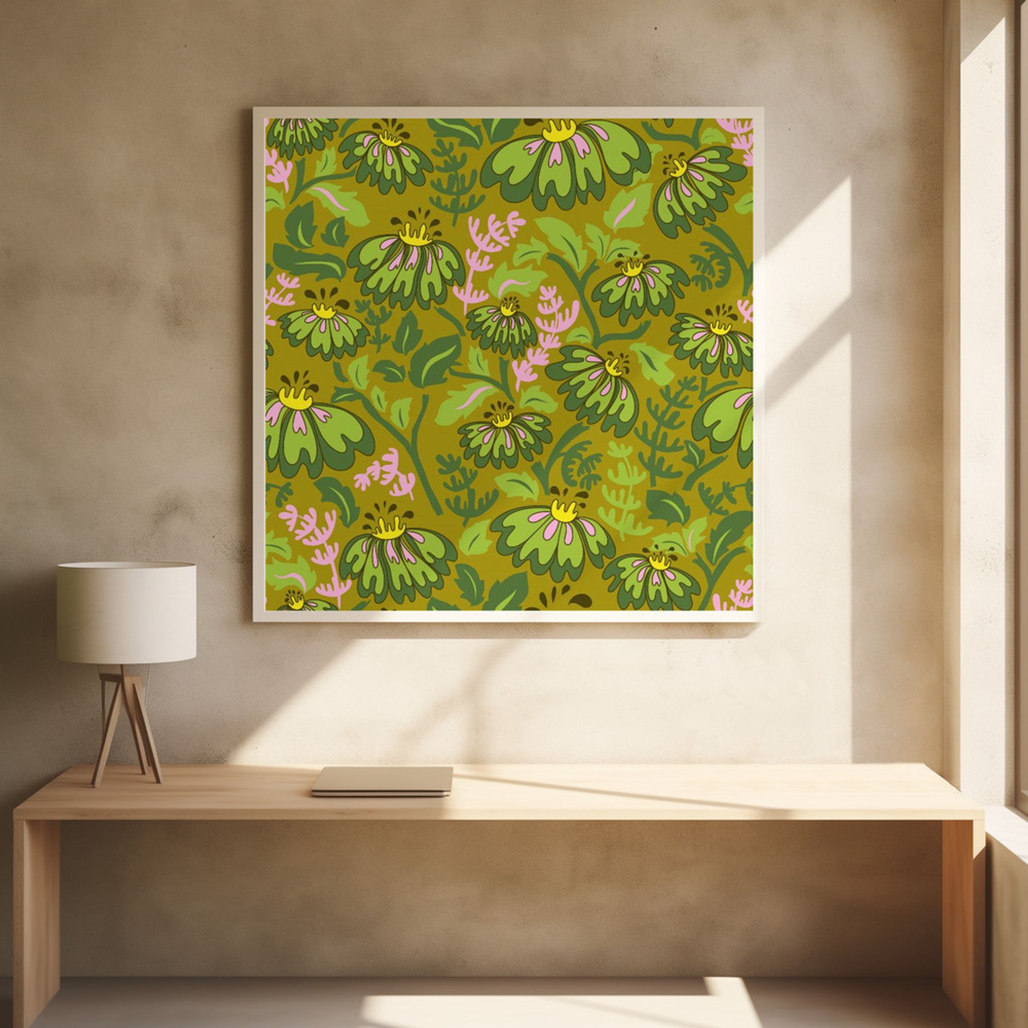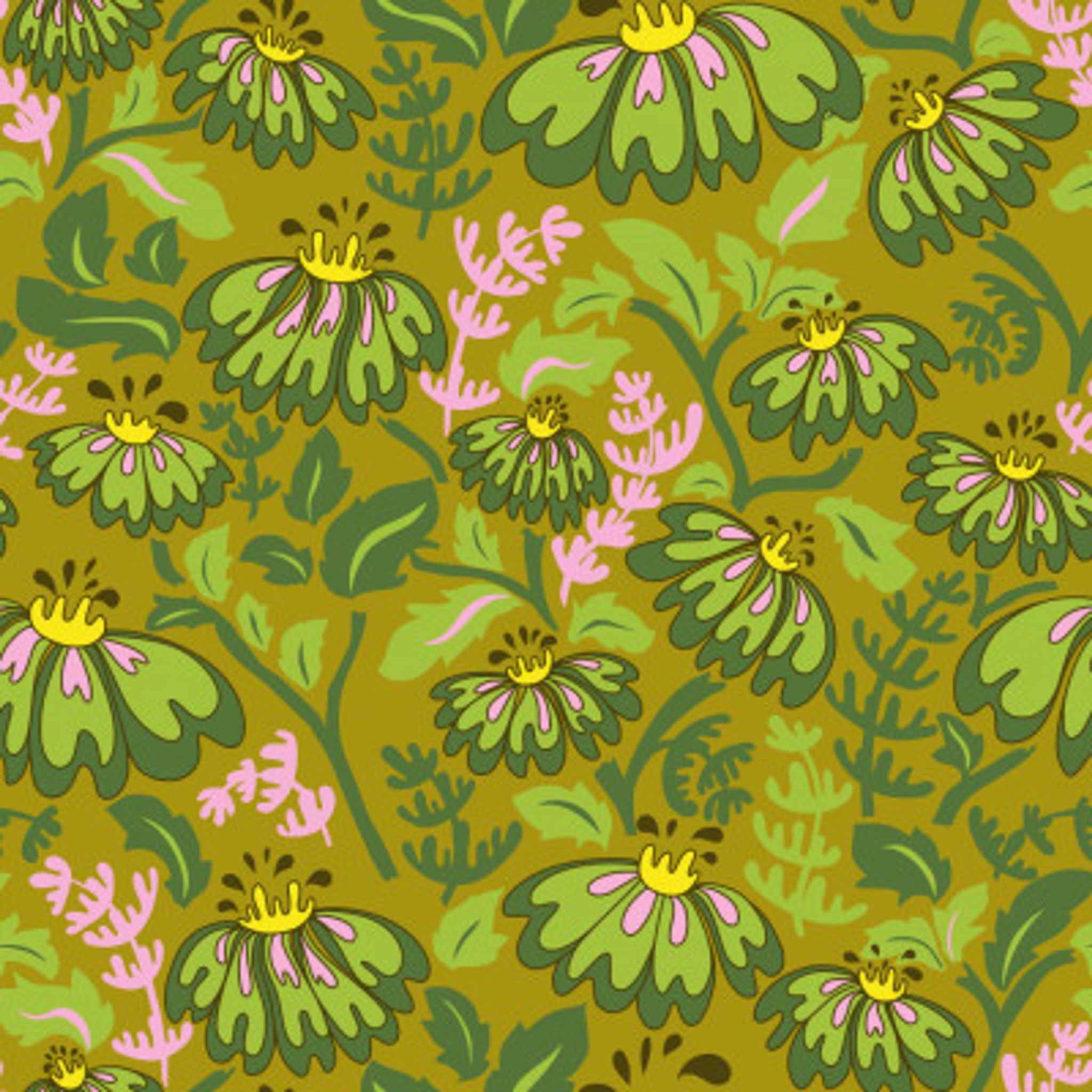 Maximalism 70s Retro Flowers Meadowland Green pattern