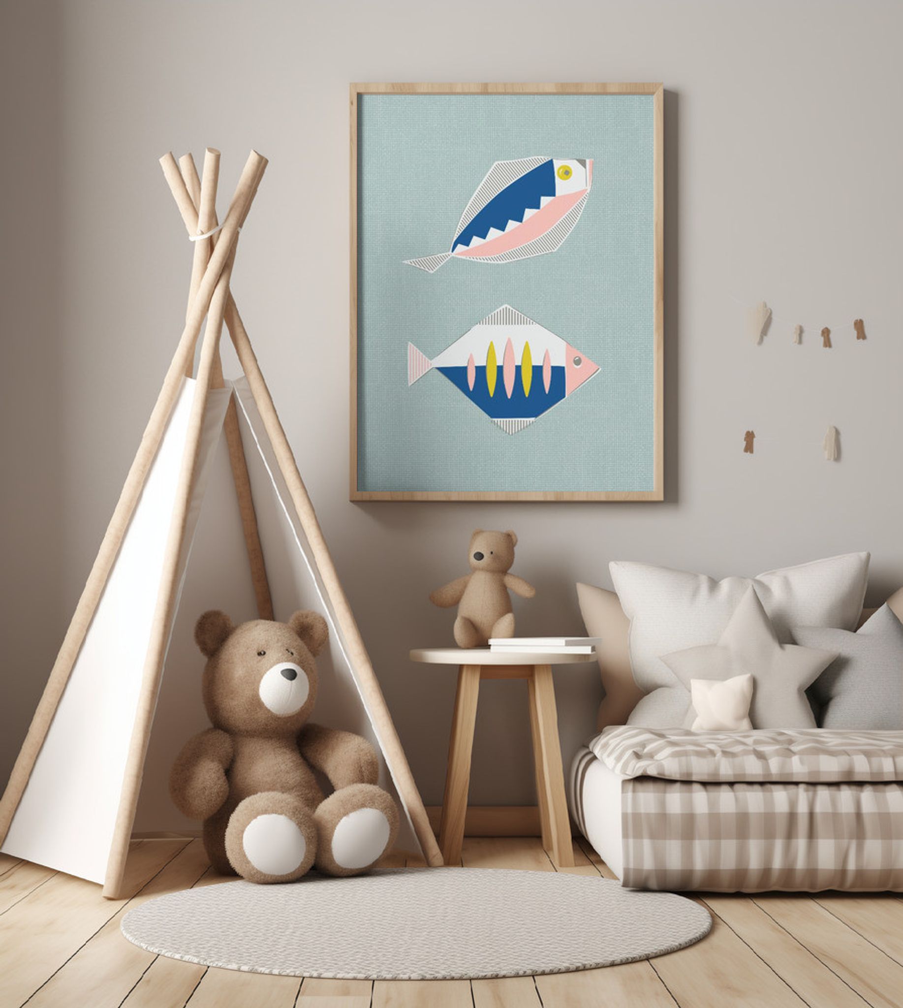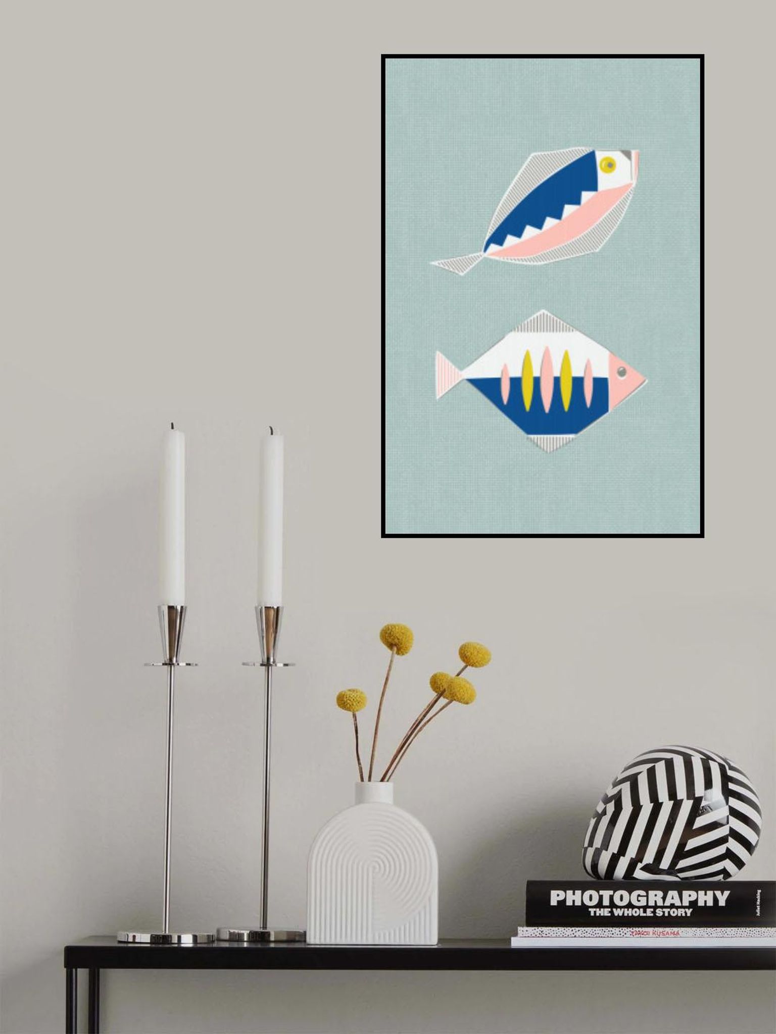 Mid Century Kitchen Fishes Mint
