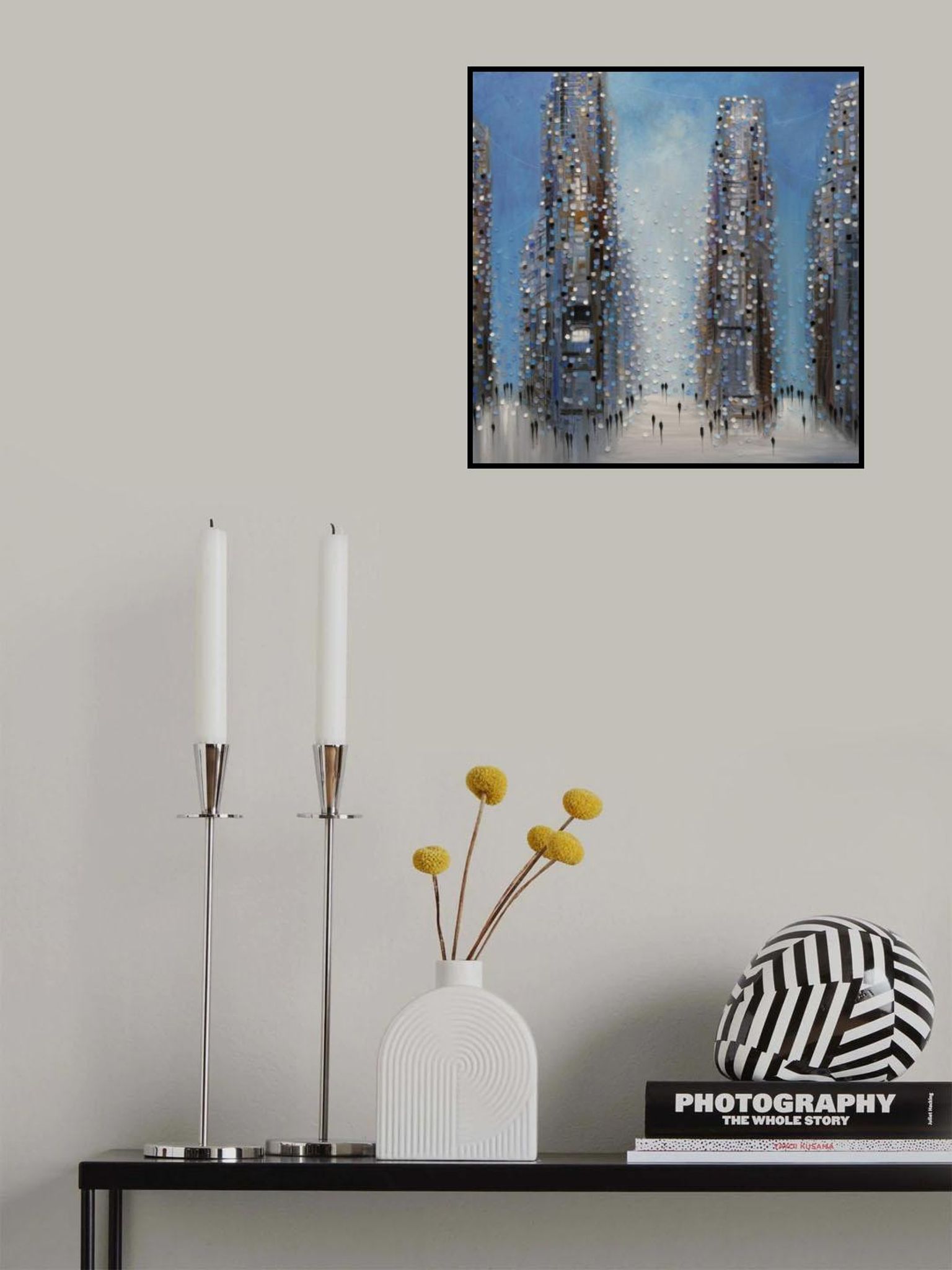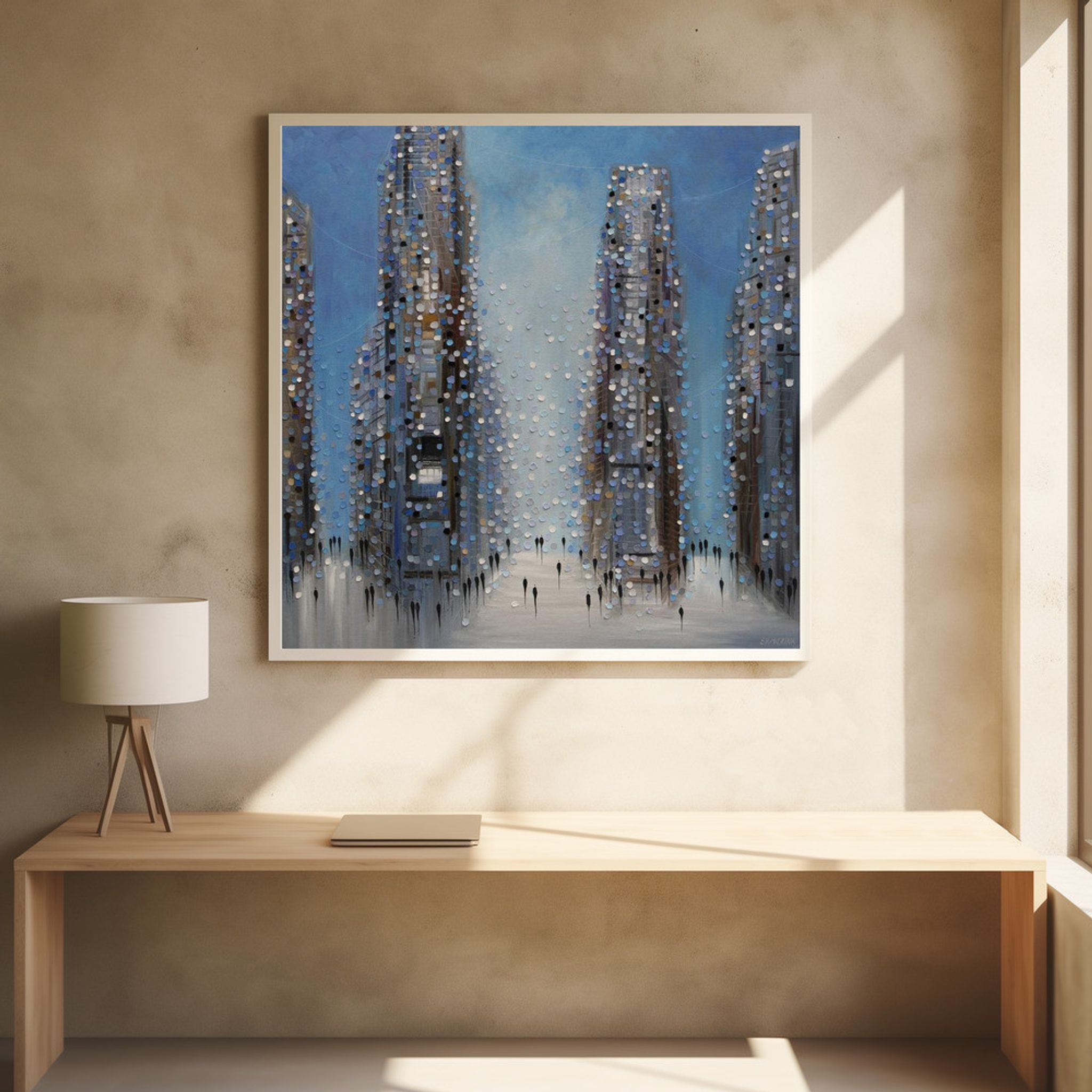 - Biografi: Född i Ryssland, Ekaterina Ermilphina bor och arbetar nu i New Jersey. Hon växte upp i Jalta, där hon studerade vid School of Art of F. Vasiliev, examen 1991. 1992 flyttade hon till Sankt Petersburg och förtjänade sin MFA från State Art and Industry Academy 1998. Stadens skönhet och kultur inspirerade henne att måla stadslandskap. År 2005 flyttade hon till USA, och hennes verk har varit med i solo- och grupputställningar på platser som The New York Museum of Contemporary Art, The Hunter Museum of American Art, och Artspace Warehouse Los Angeles. Noterbara samlare inkluderar Kelly Clarkson. Ekaterina abstrakta målningar kombinerar tillämpa och ta bort oljemålning med en palettkniv. Hennes stadsbilder är inspirerade av skylines som de av Manhattan och Chicago. Genom att fokusera på hur ljus interagerar med ämnet, skapar hon energifyllda landskap och porträtt, ritar tittare in i verket genom sammanslagningen av otaliga prickar av färg.