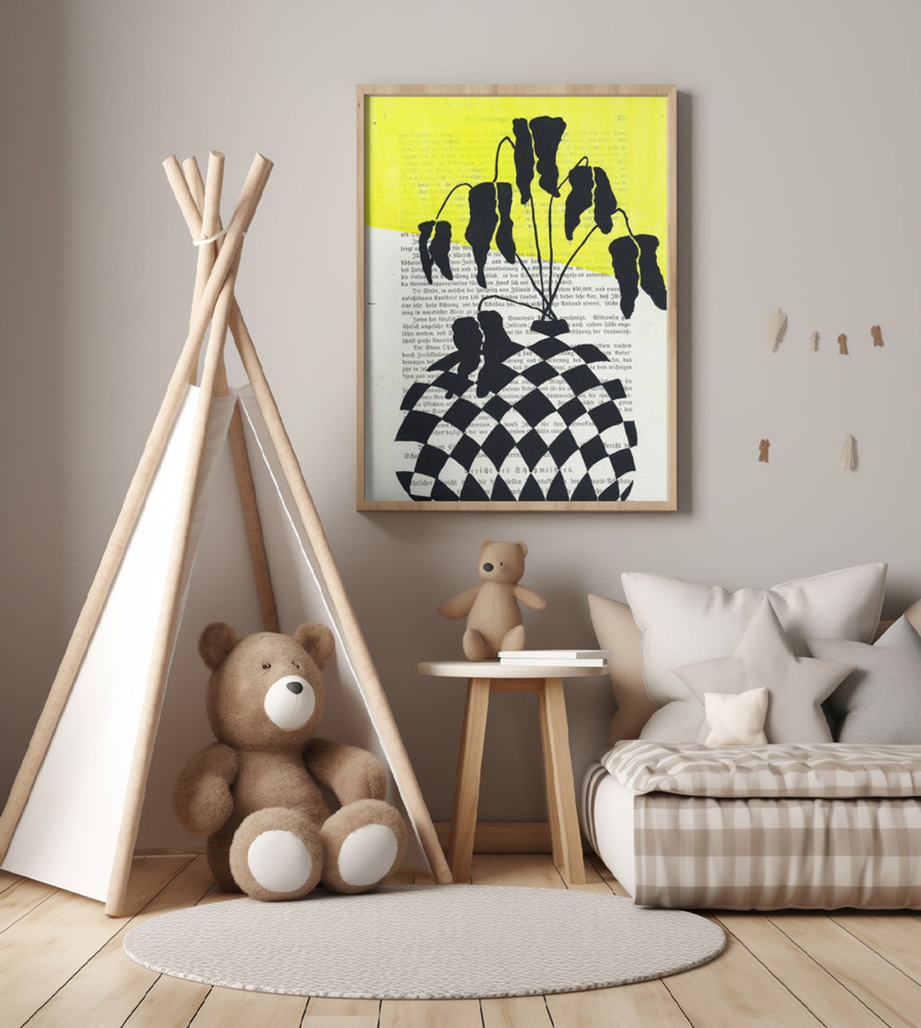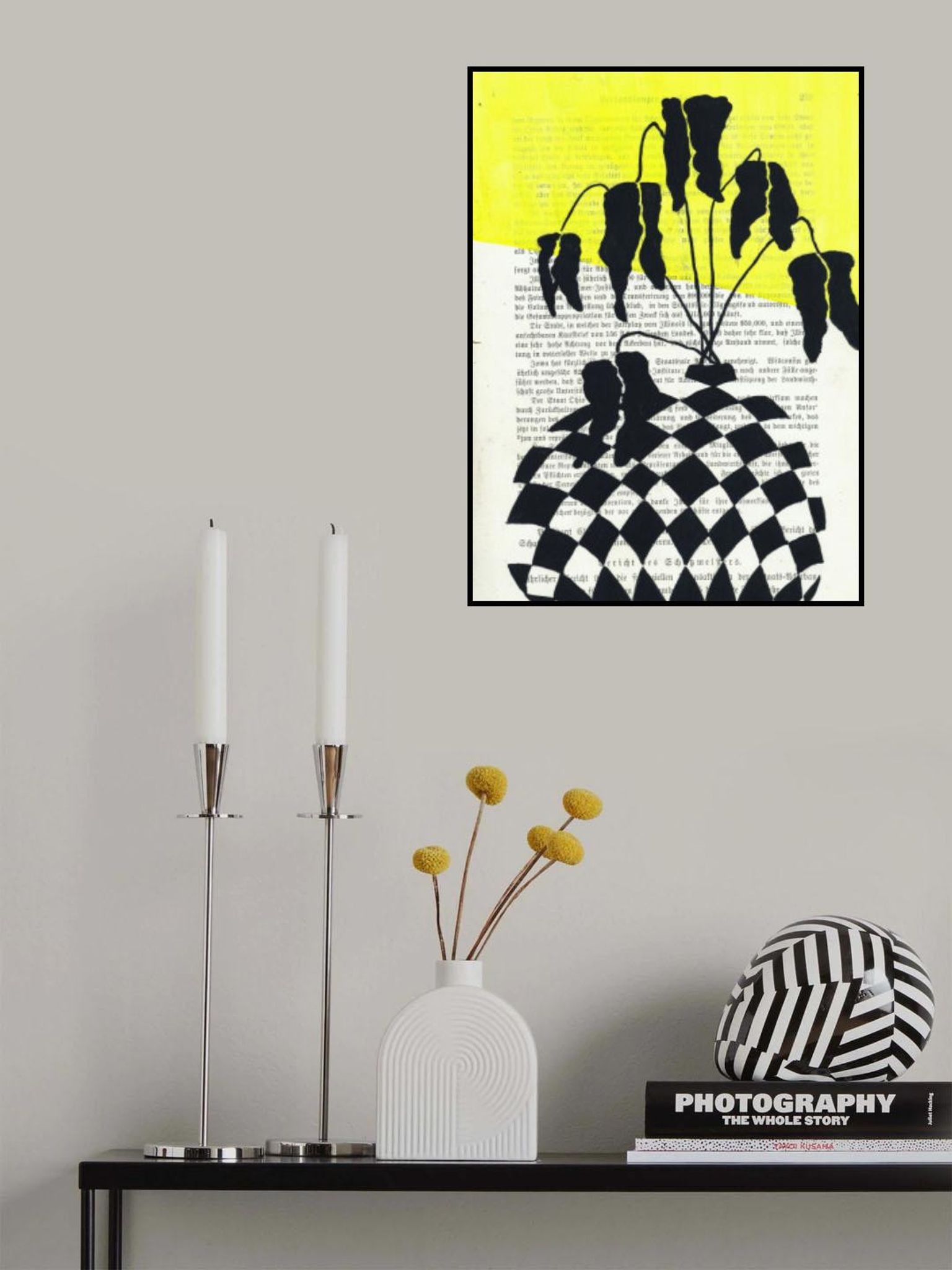 Minimalist leaves in a checkered vase