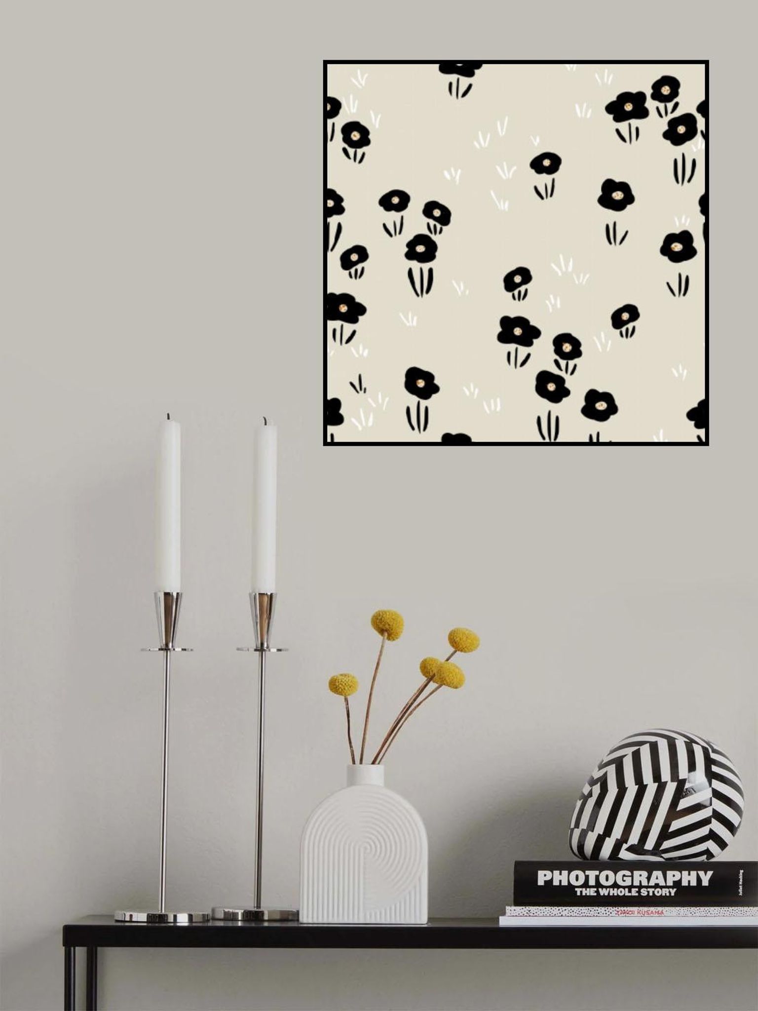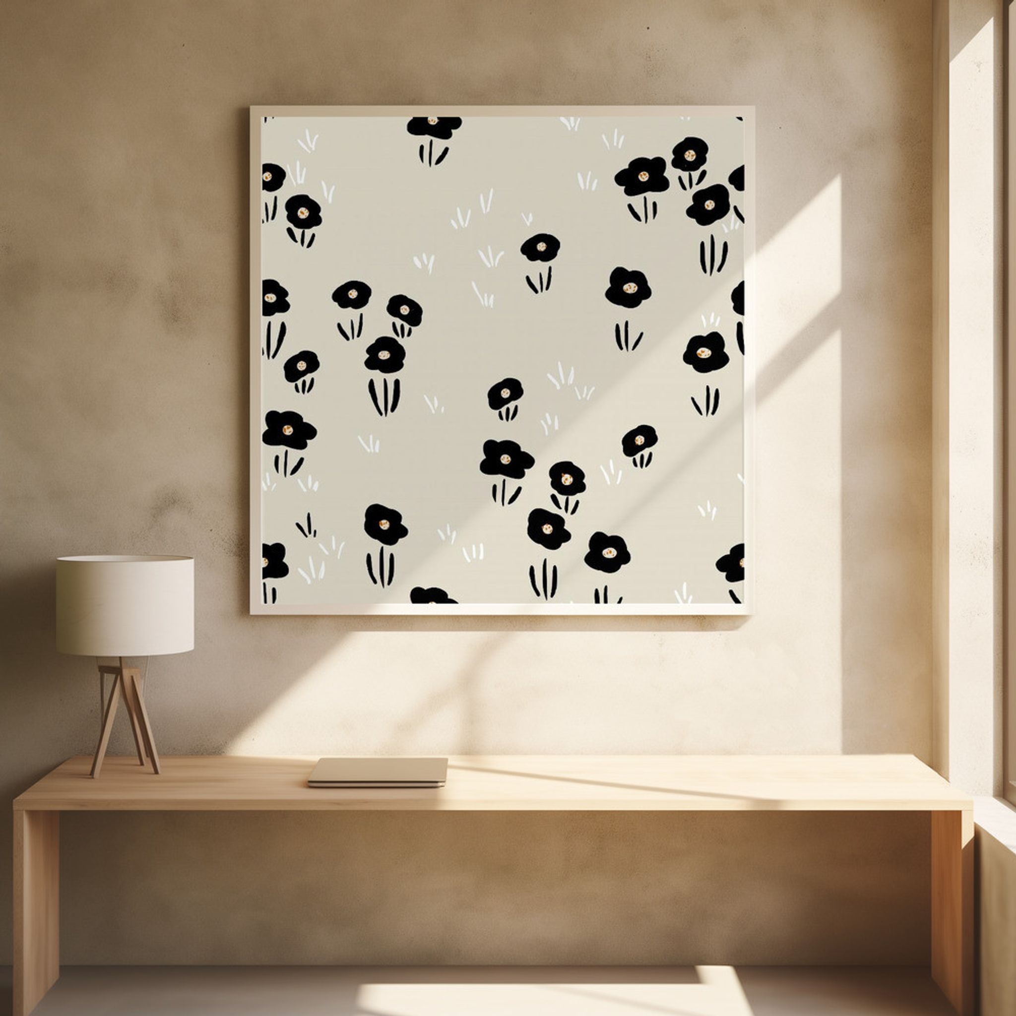 Minimalistic Wildflower black and white pattern