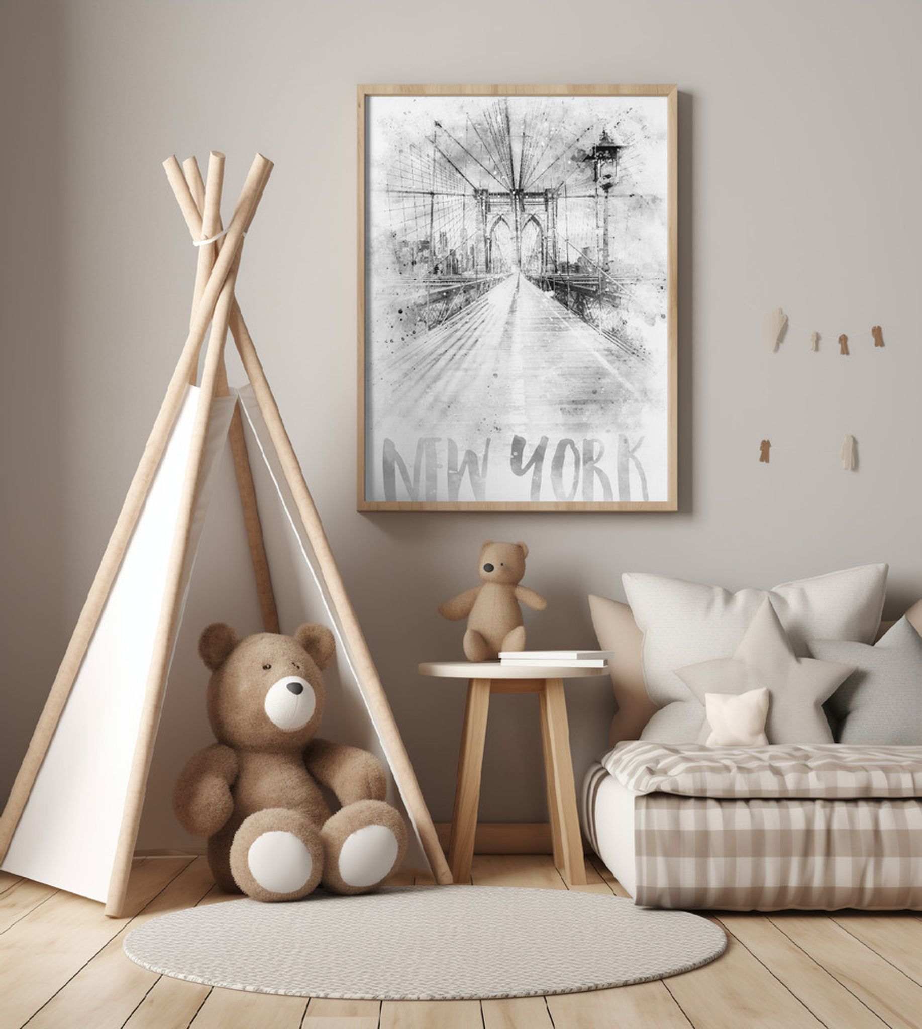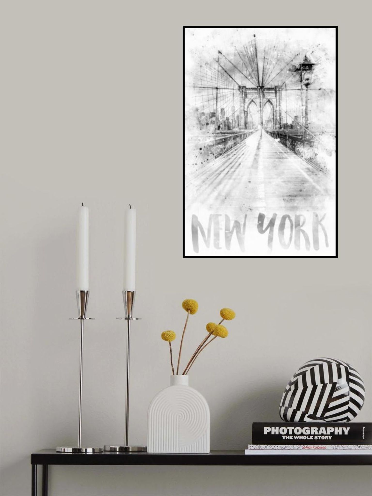 Monochrome Art NYC Brooklyn Bridge | watercolor