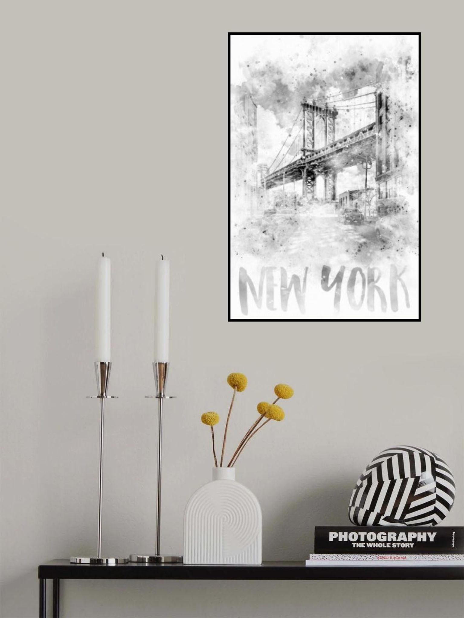 Monochrome Art NYC Manhattan Bridge | watercolor