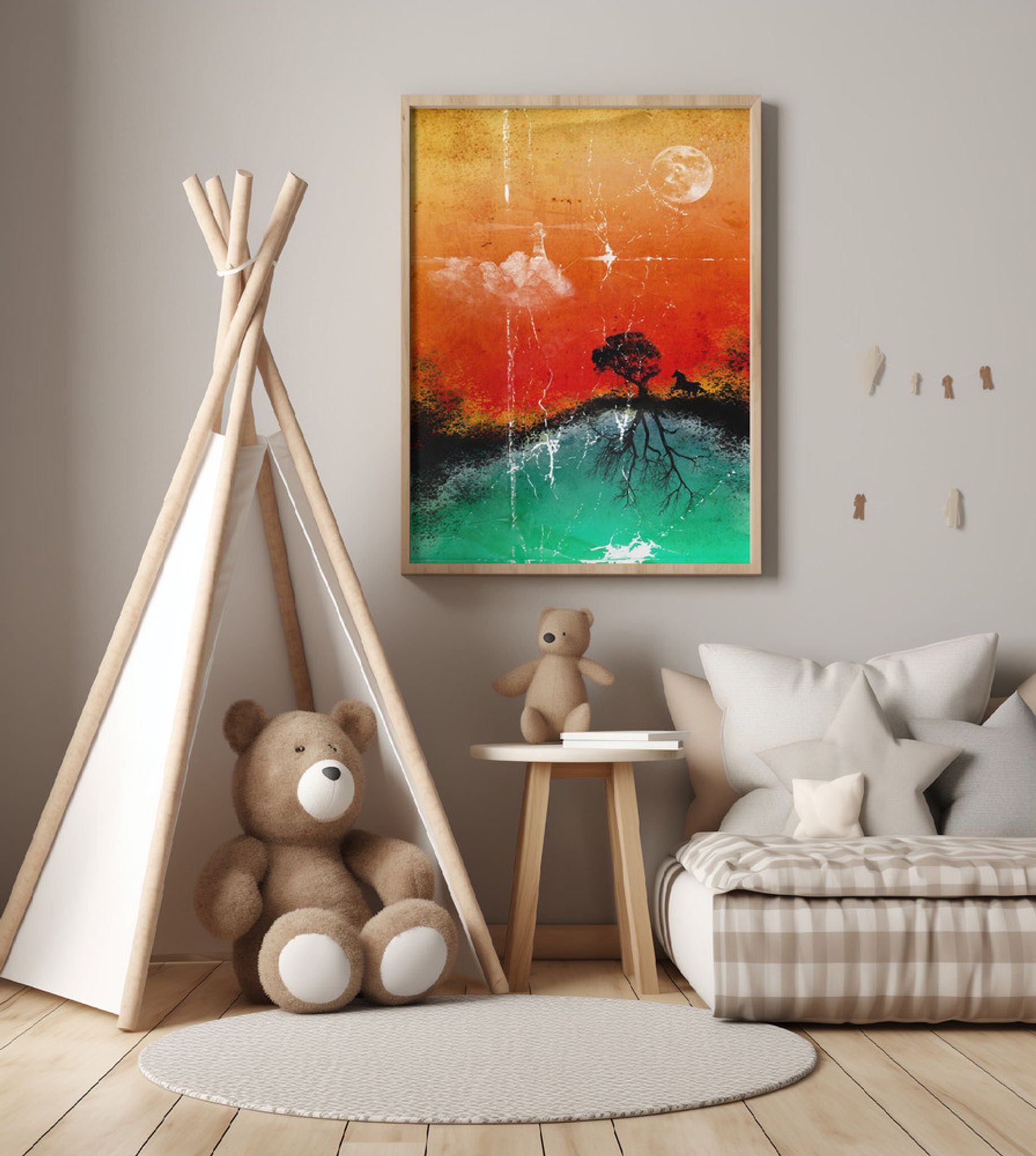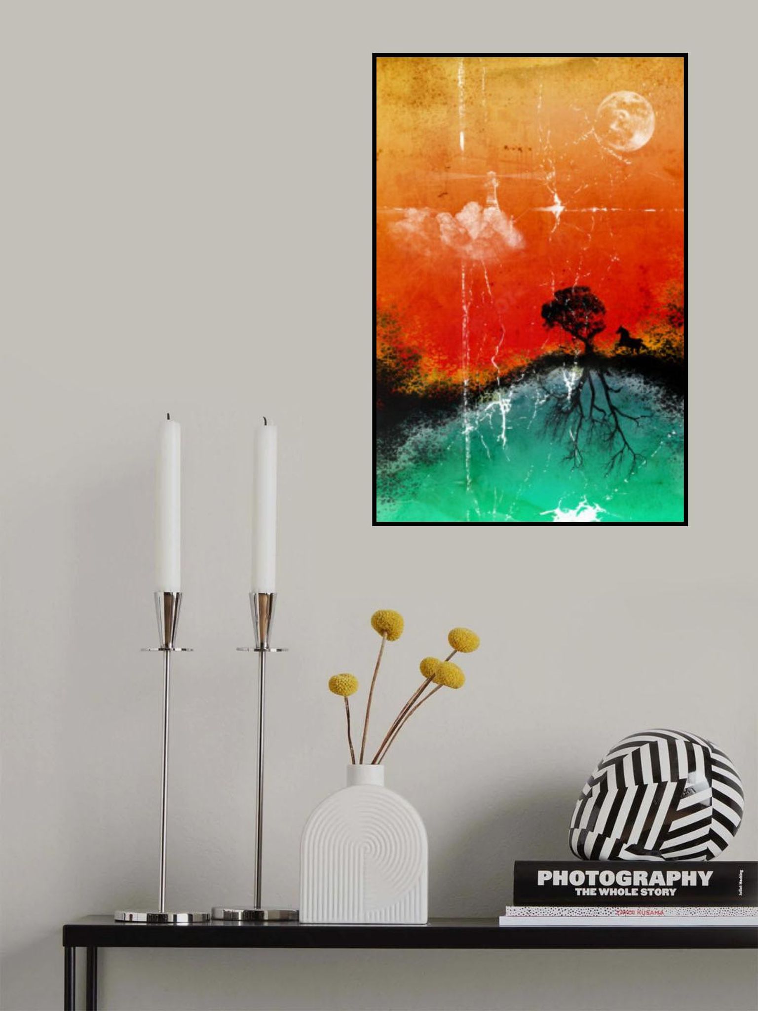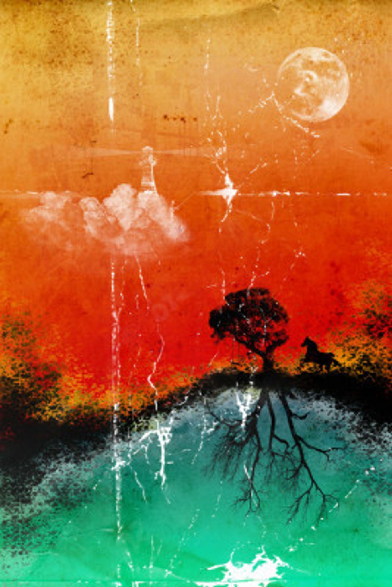 Moon, horse, tree and lighthouse