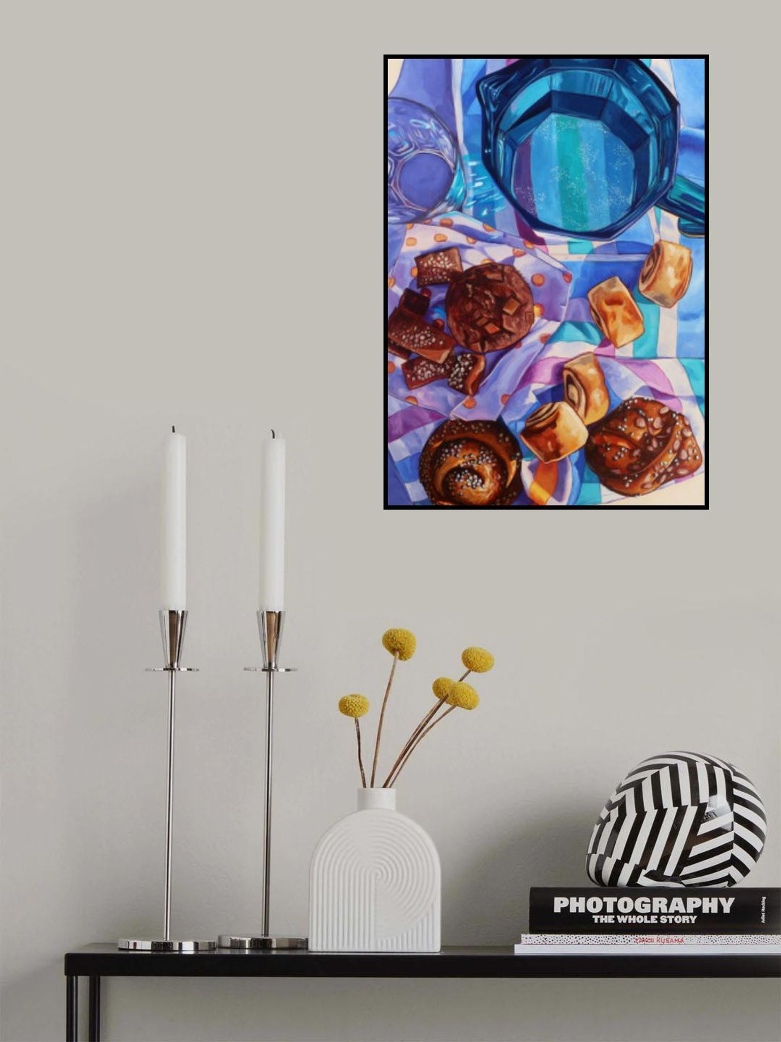 • Biografi: Anna Zdanowicz är en samtida konstnär med ett unikt fokus på levande, kulinariska-tema kompositioner. Hennes konstverk, känd för sina intrikata detaljer och djärva färger, fångar essensen av vardagliga stunder som delas över måltider. Med en blandning av realism och abstrakta element, Annas målningar inbjuder tittare att utforska texturer och mönster av mat och bordsinställningar i ett nytt ljus. Baserat i Ingen, har hon fått erkännande för sin distinkta stil som kombinerar traditionella och moderna tekniker. Utforska Annas portfölj och ge ett stänk av färg och glädje till ditt utrymme med hennes fängslande bitar.