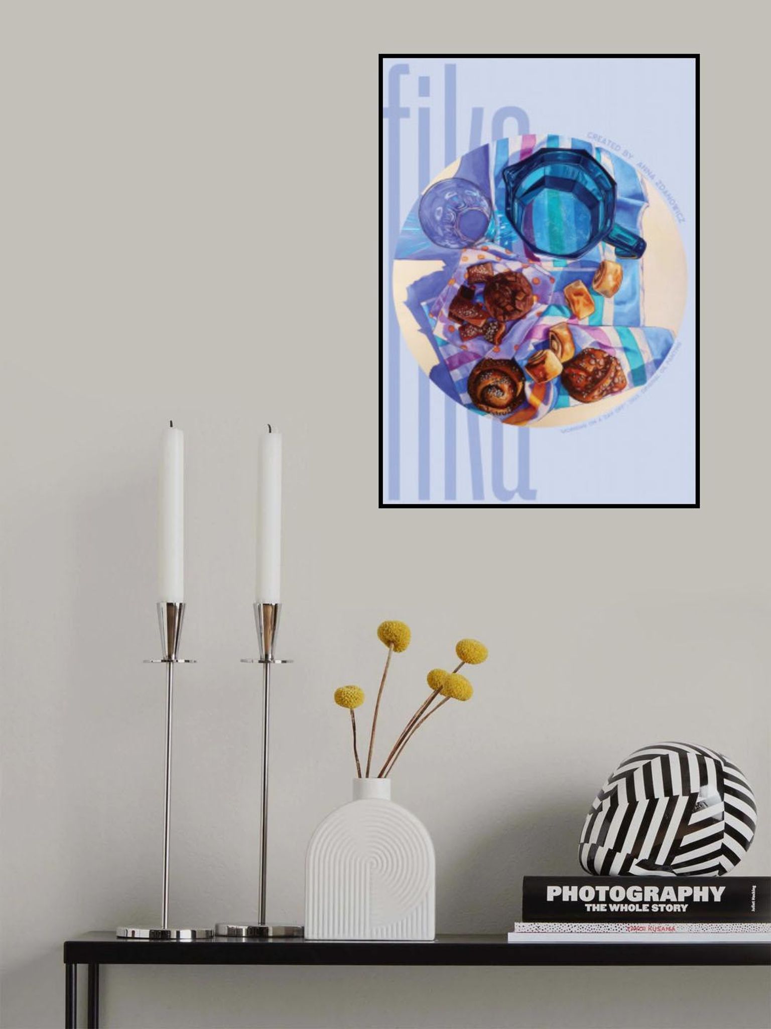 • Biografi: Anna Zdanowicz är en samtida konstnär med ett unikt fokus på levande, kulinariska-tema kompositioner. Hennes konstverk, känd för sina intrikata detaljer och djärva färger, fångar essensen av vardagliga stunder som delas över måltider. Med en blandning av realism och abstrakta element, Annas målningar inbjuder tittare att utforska texturer och mönster av mat och bordsinställningar i ett nytt ljus. Baserat i Ingen, har hon fått erkännande för sin distinkta stil som kombinerar traditionella och moderna tekniker. Utforska Annas portfölj och ge ett stänk av färg och glädje till ditt utrymme med hennes fängslande bitar.