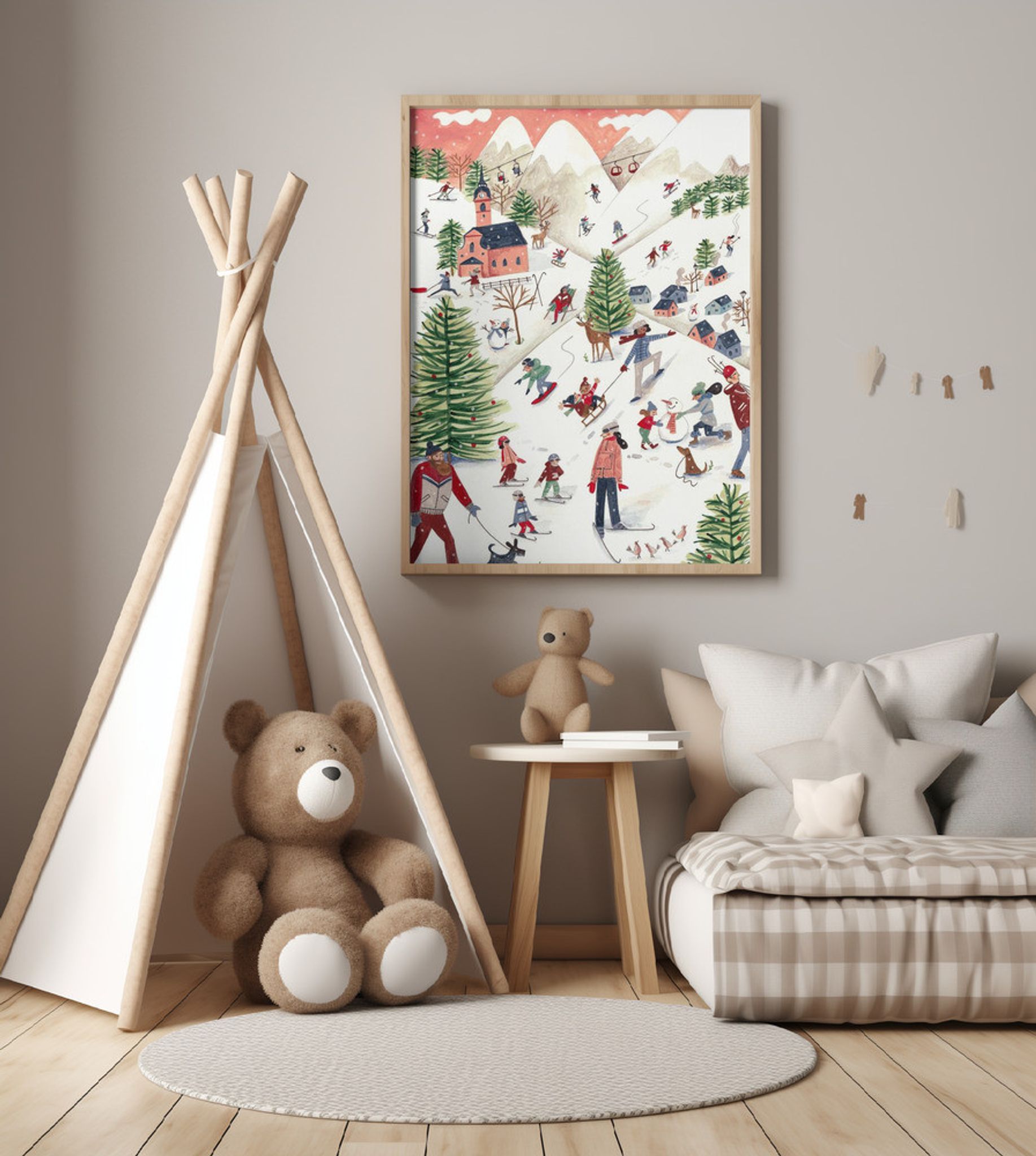 Mountain landscape with houses in the snow Christmas