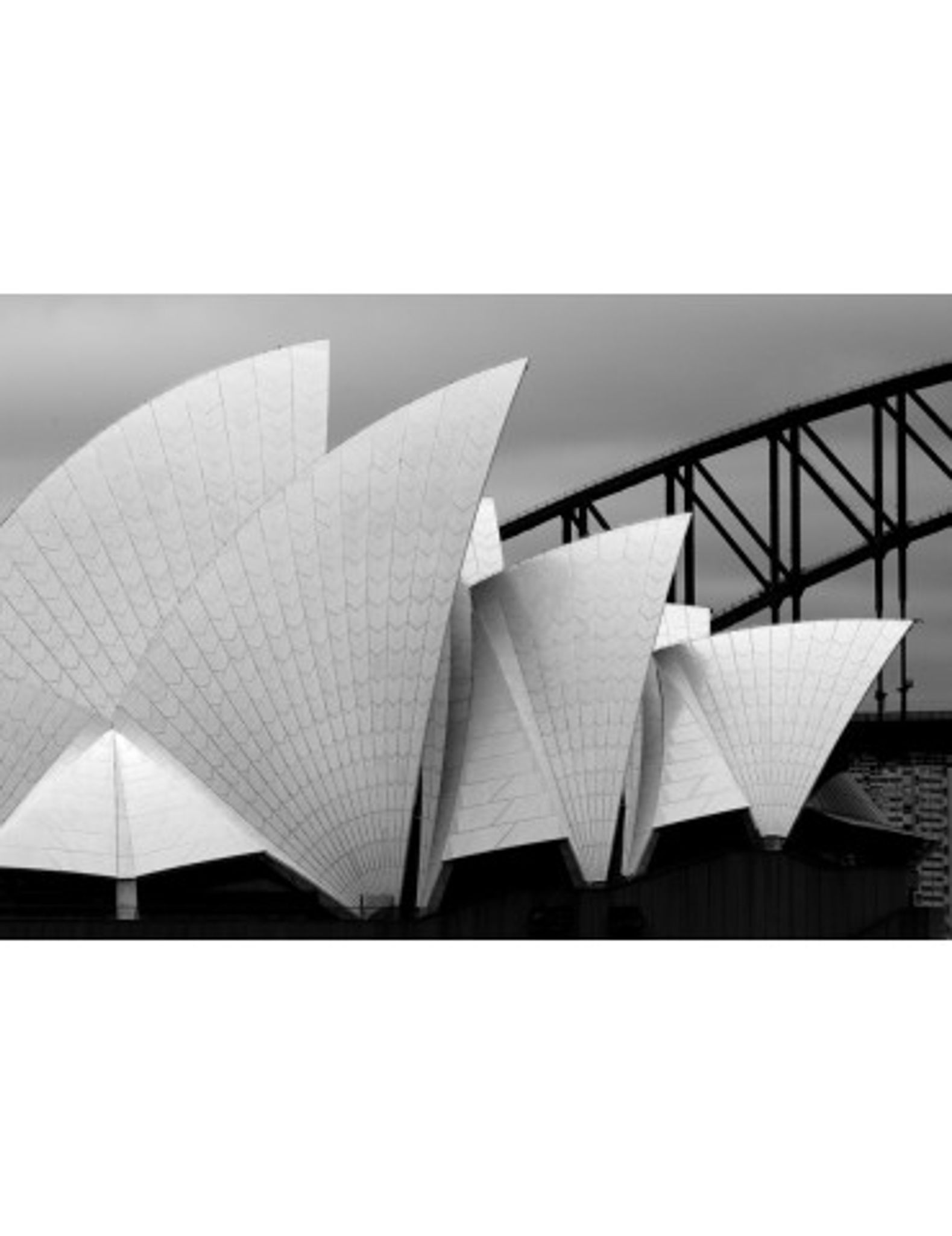 En av de vackraste byggnaderna i världen måste vara operahuset i Sydney. På ett svartvitt foto som poster kan denna vackra byggnad dekorera dina väggar.