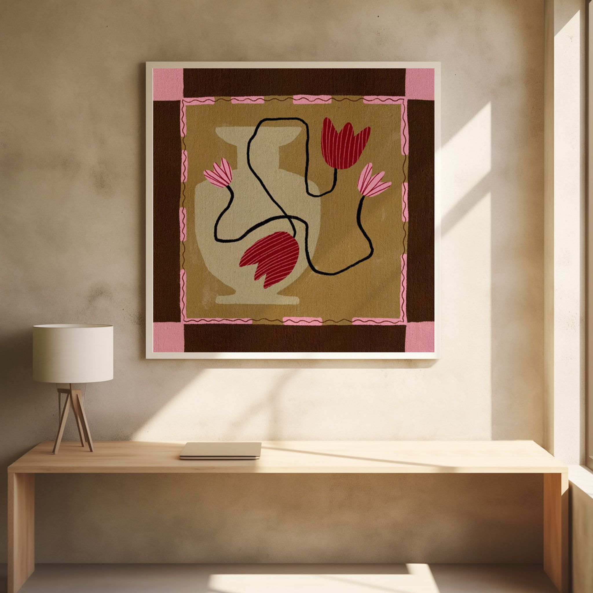 - Biografi: Shatha Al Dafai är en samtida konstnär från Omani känd för sina minimalistiska men livfulla konstverk som utforskar teman som koppling, identitet och självupptäckt. Hennes unika stil blandar abstrakta former, linjekonst och lekfulla illustrationer och skapar visuellt slående verk som genljuder globalt. Förutom konsttryck erbjuder hon unika produkter som gör hennes konst tillgänglig i vardagen. Med ett starkt fokus på berättande genom konst fortsätter Shatha Al Dafai att inspirera och knyta kontakt med sin publik genom meningsfulla, tidlösa skapelser.