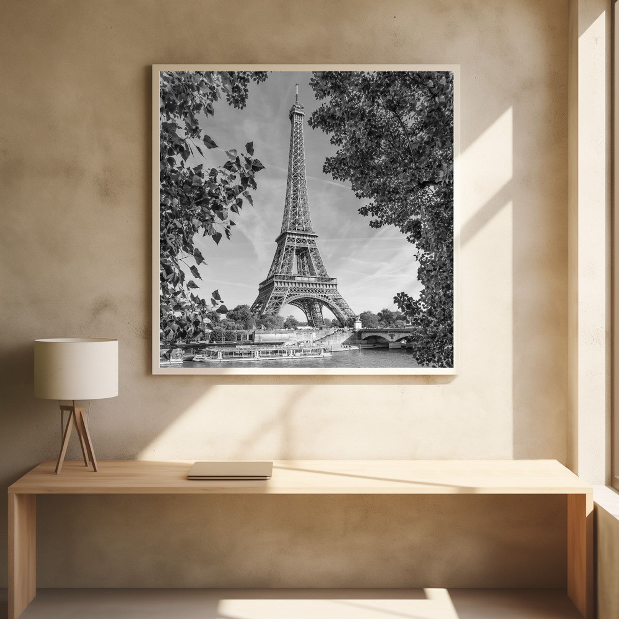 PARIS Eiffel Tower & River Seine - Monochrome