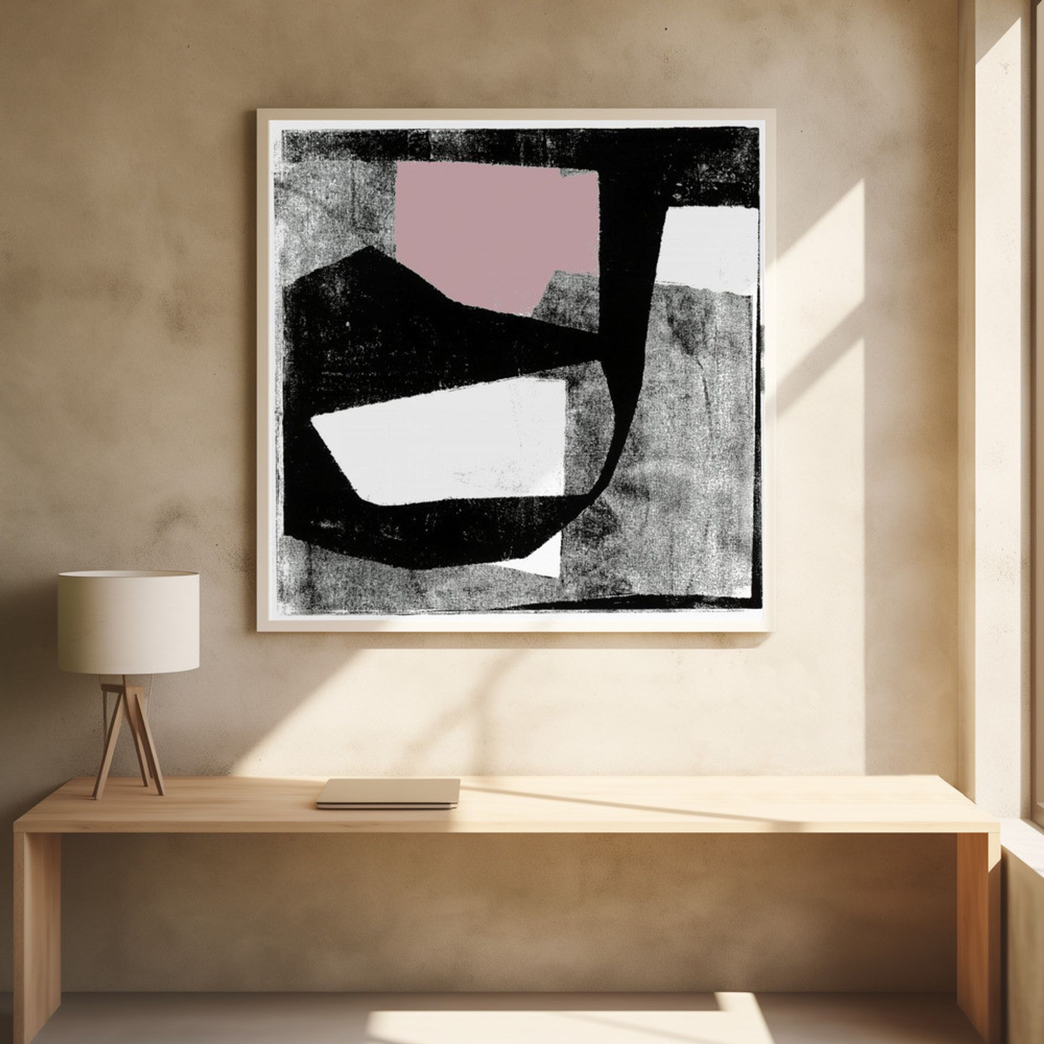 Pink and Black Abstract Shapes Print No1