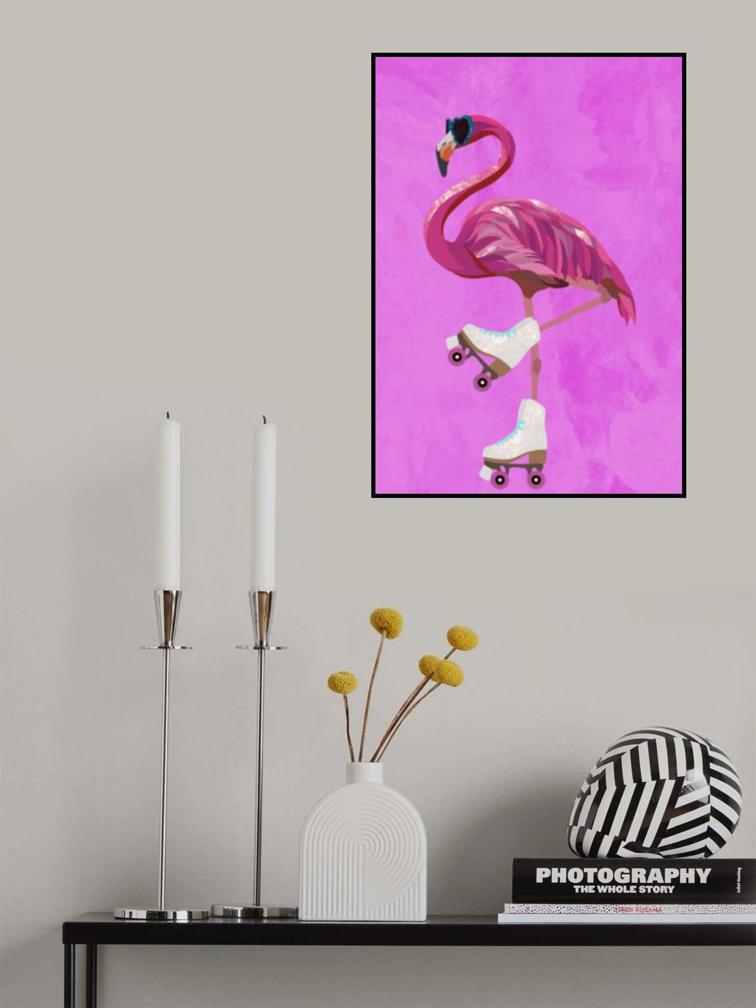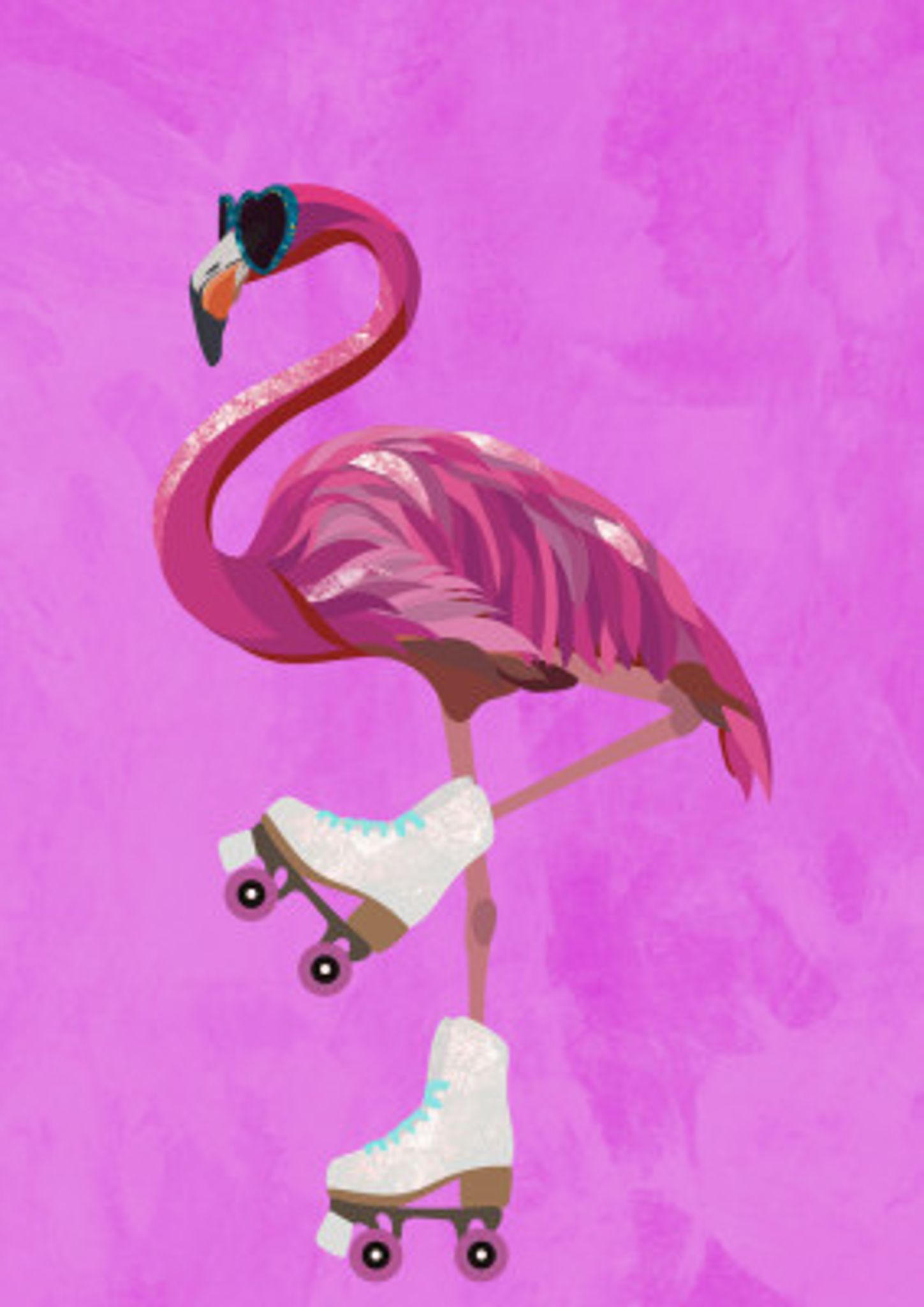 Pink Flamingo Roller Skating