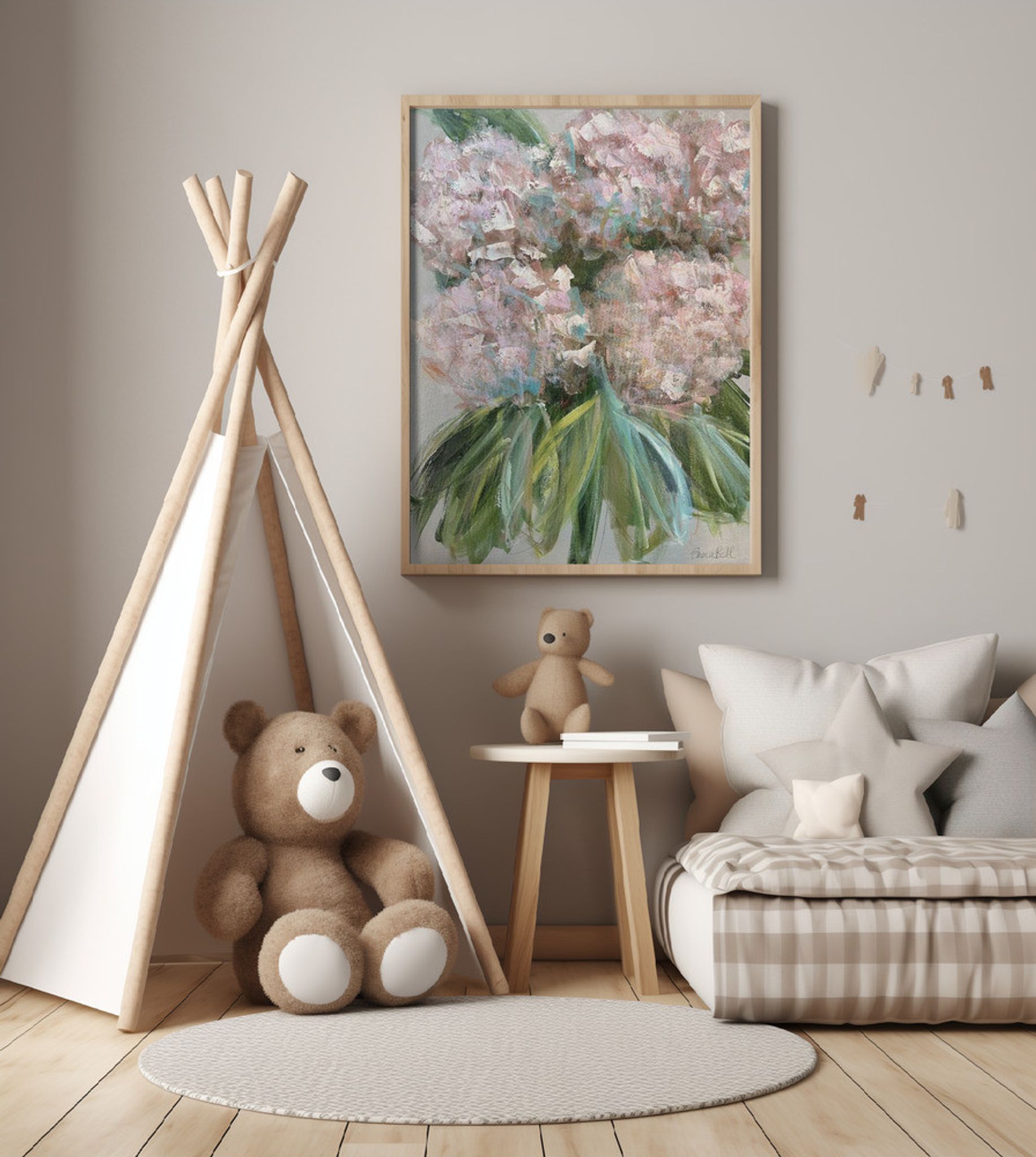 Pink Hydrangeas with Green Leaves