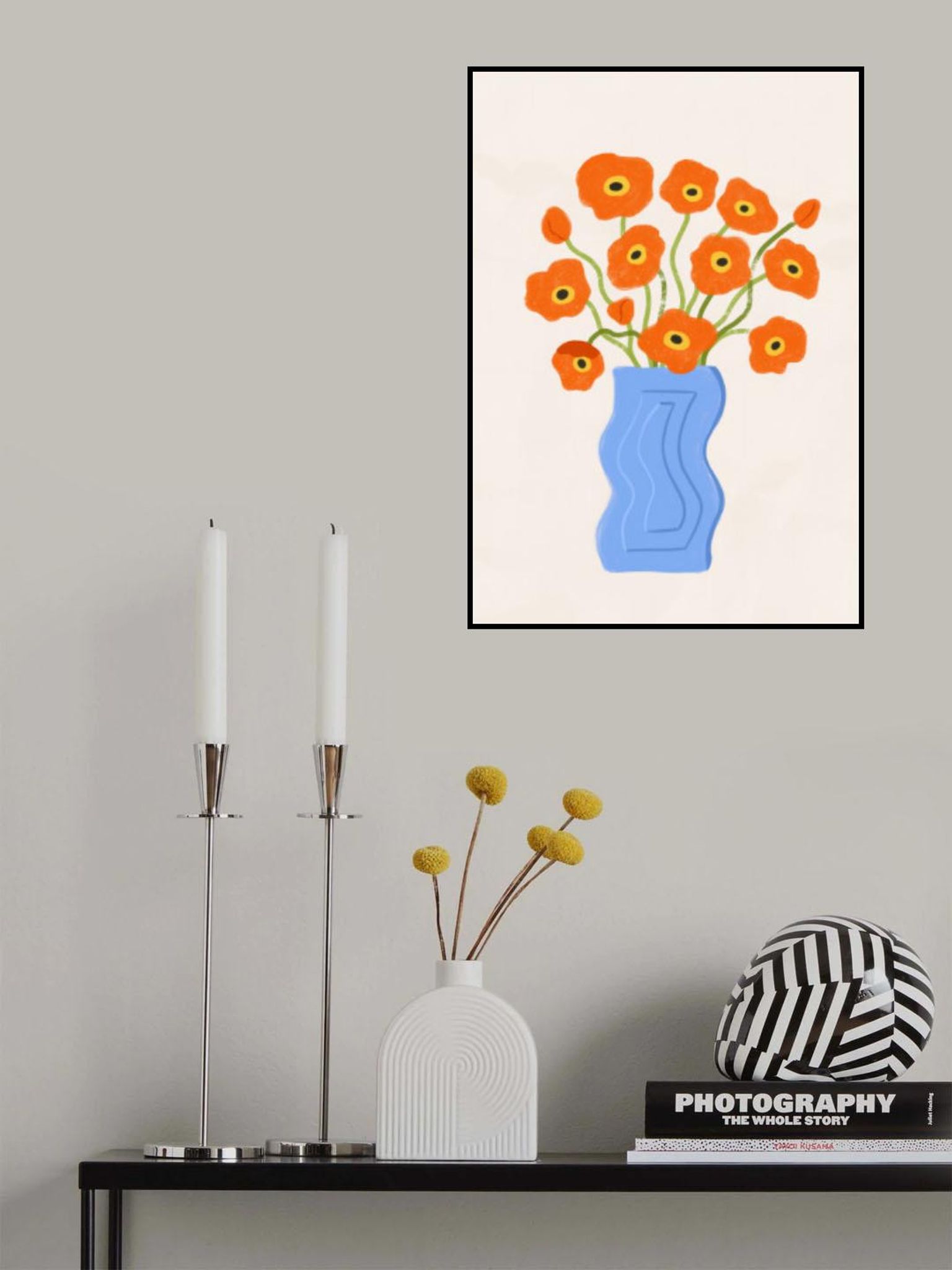 Poppies In Blue Vase