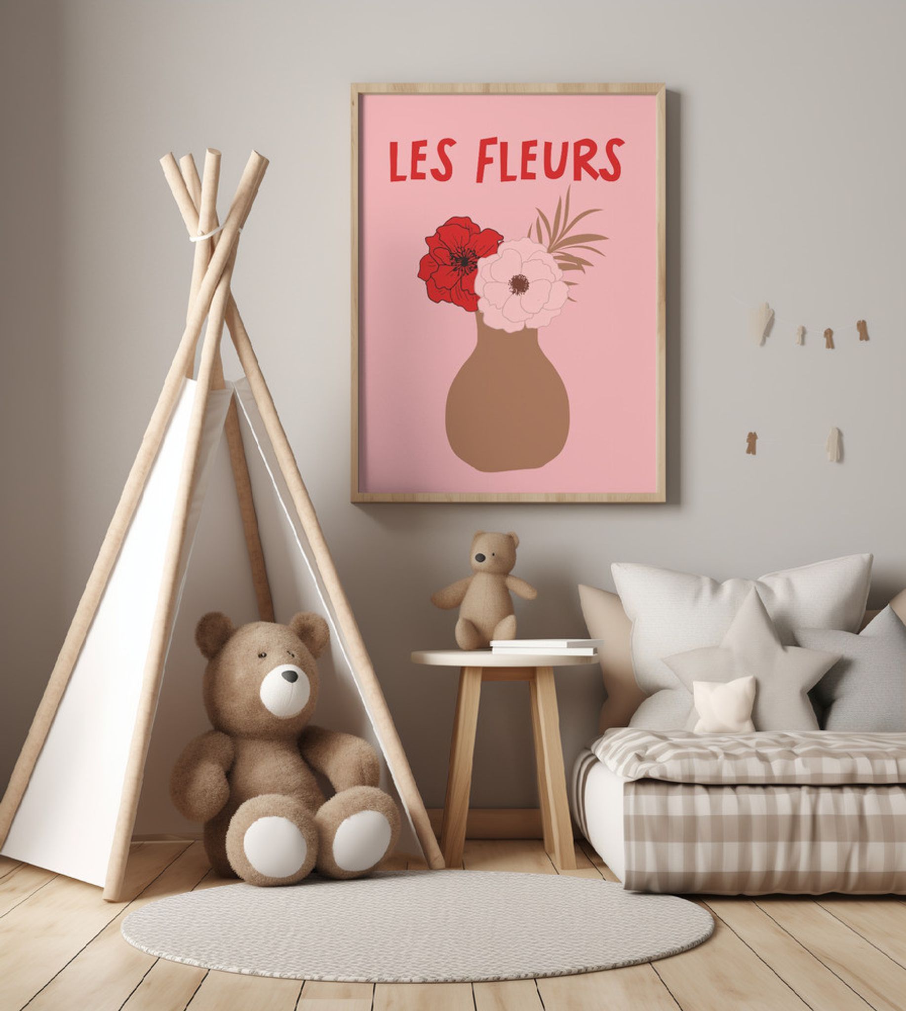 Potted Florals Pink and Red