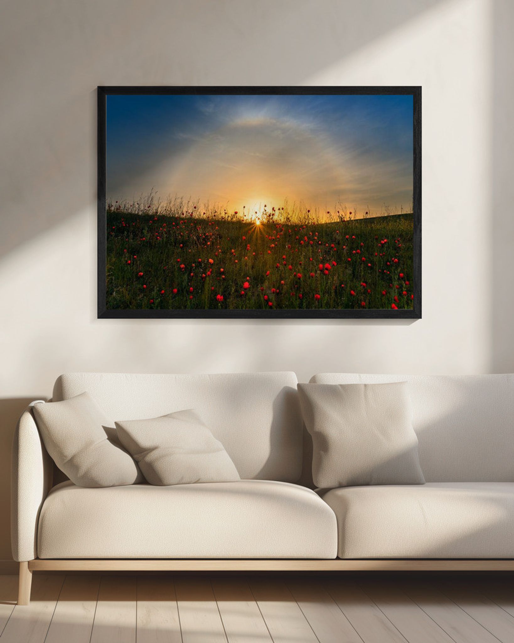 Red poppies and sunrise
