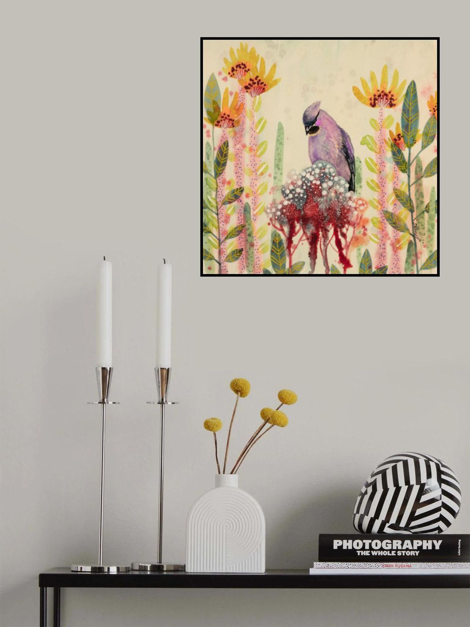 - Biografi: Sylvie Demers är en skicklig konstnär vars verk blandar abstraktion med naturinspirerade element. Med en djup passion för färg och form, skapar Demers fascinerande konstverk som väcker lugn och glädje. Hennes stil definieras av flytande penselarbete, drömska färgpaletter, och ett känsligt samspel av ljus och skugga, med material som akvarell och bläck. Inspirerad av skönheten i den naturliga världen, Demers infuserar sina verk med förtrollning och lugn. Hennes evocativa målningar ofta har blommiga motiv och landskap, inbjuder tittare till en fredlig, meditativ plats. Genom sin konst, försöker hon förmedla den djupa kopplingen mellan mänskliga känslor och den omgivande miljön, vilket lämnar ett bestående intryck på samlare över hela världen. Hennes kreativa process är djupt rotad i hennes lust för liv och andlighet. Med en passion för färger kontraster och natur, ser hon målning som ett lekfullt spel, inbjudande tittare att gå med i.