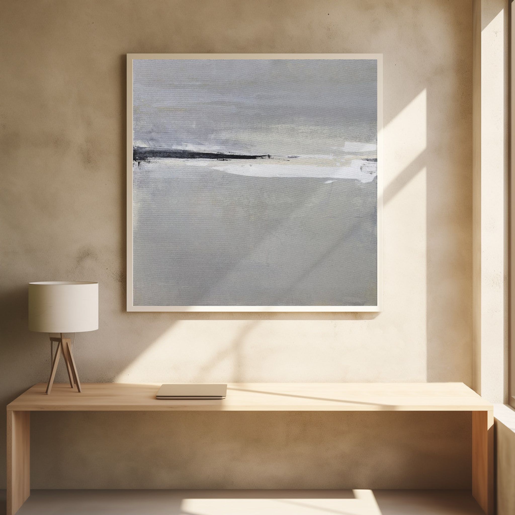 Serene Horizon with Soft Gray and White Tones