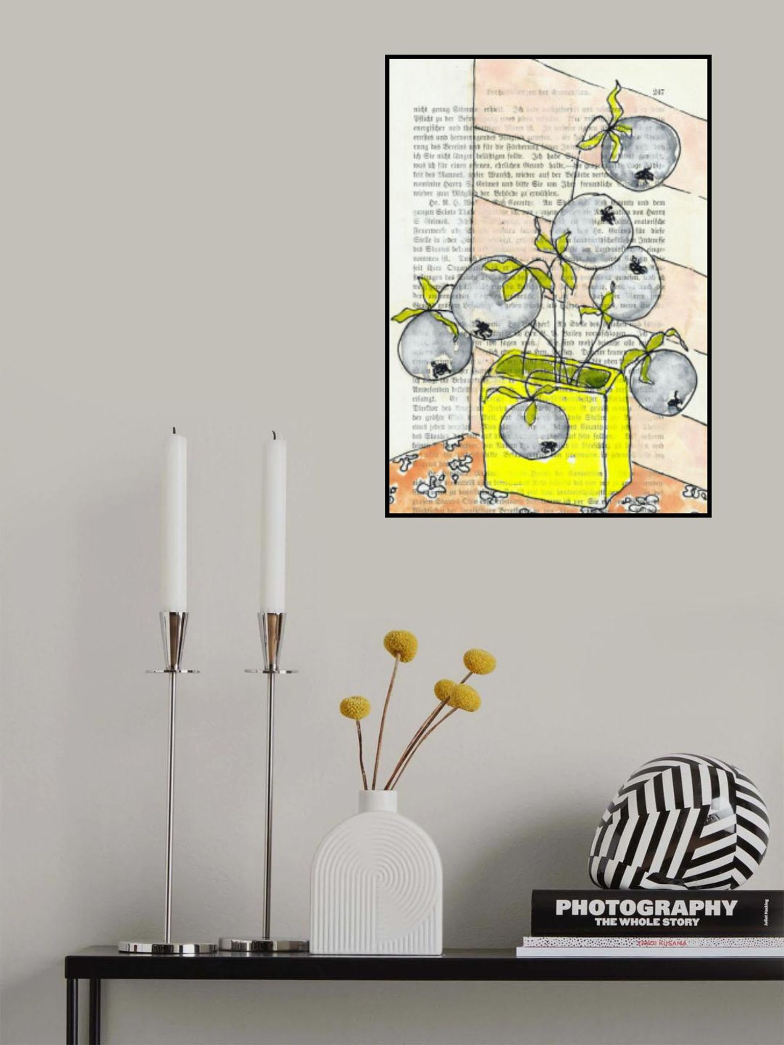 Small vase with heavy berry branches