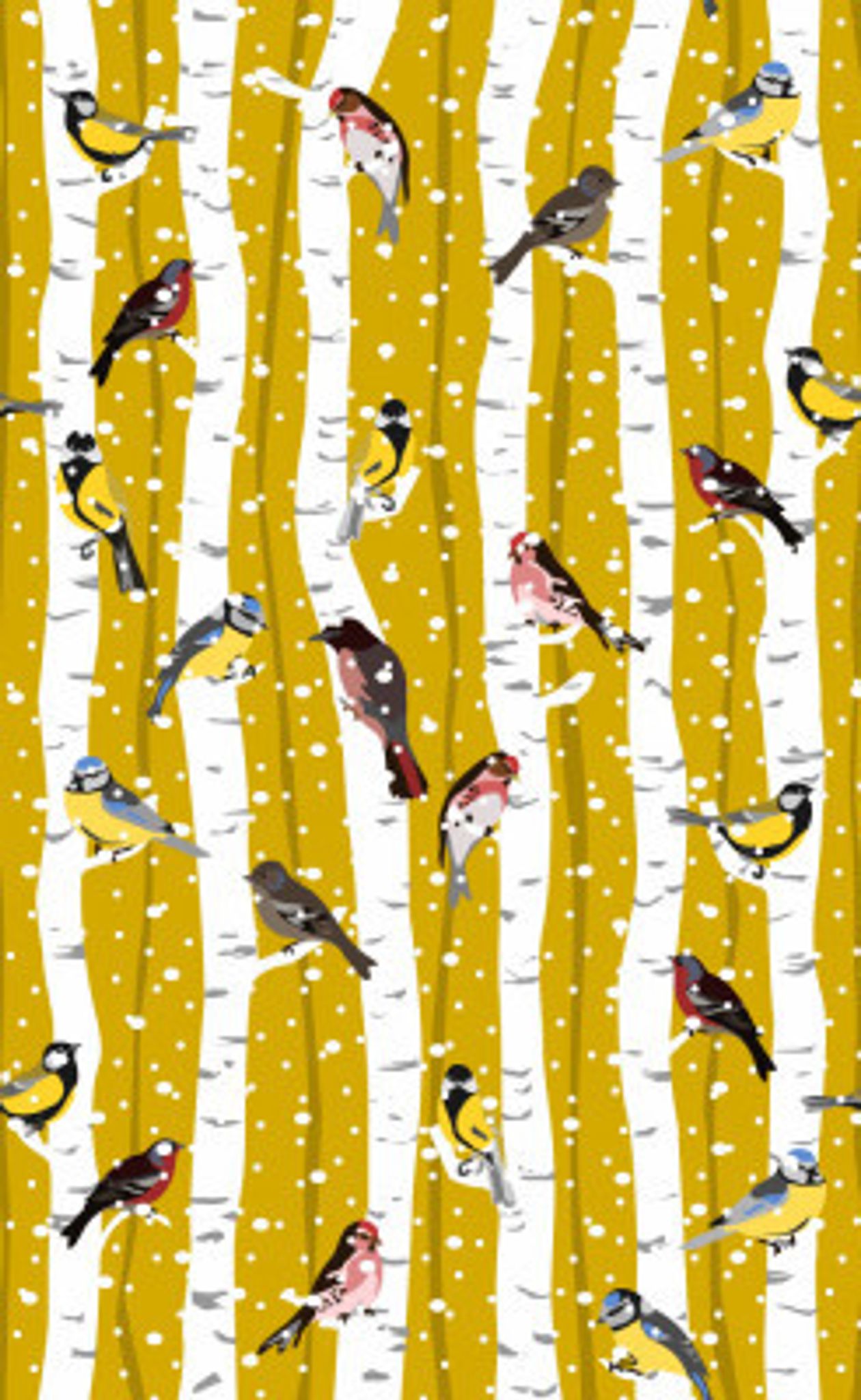 Snowy birchwood with songbirds pattern