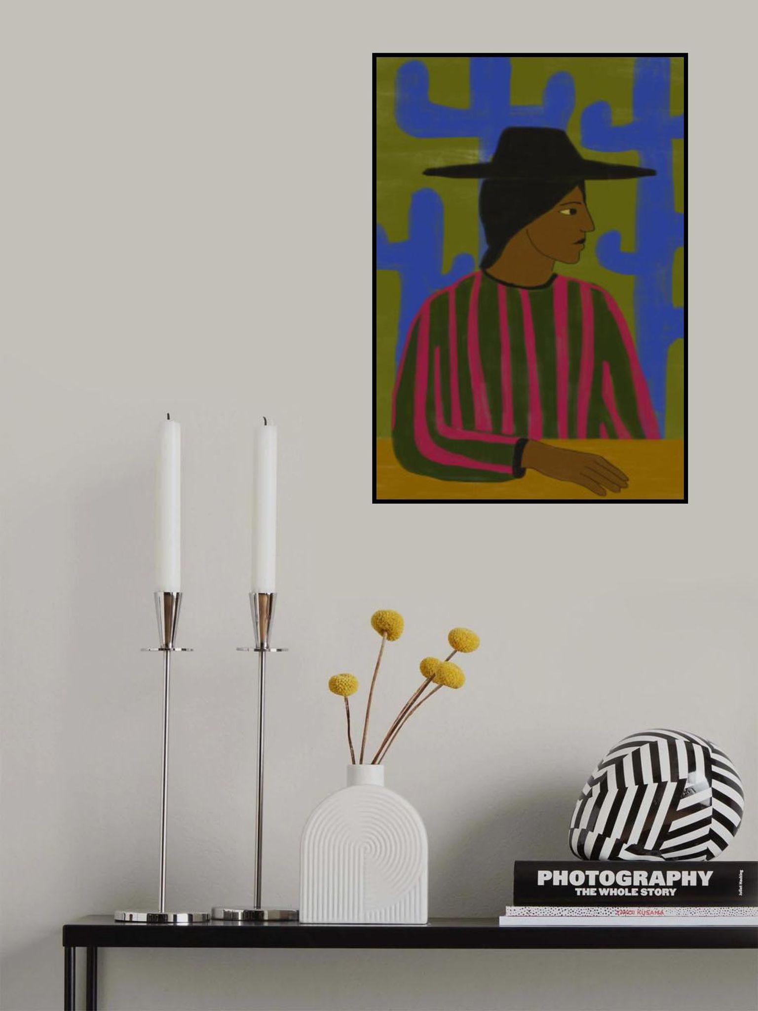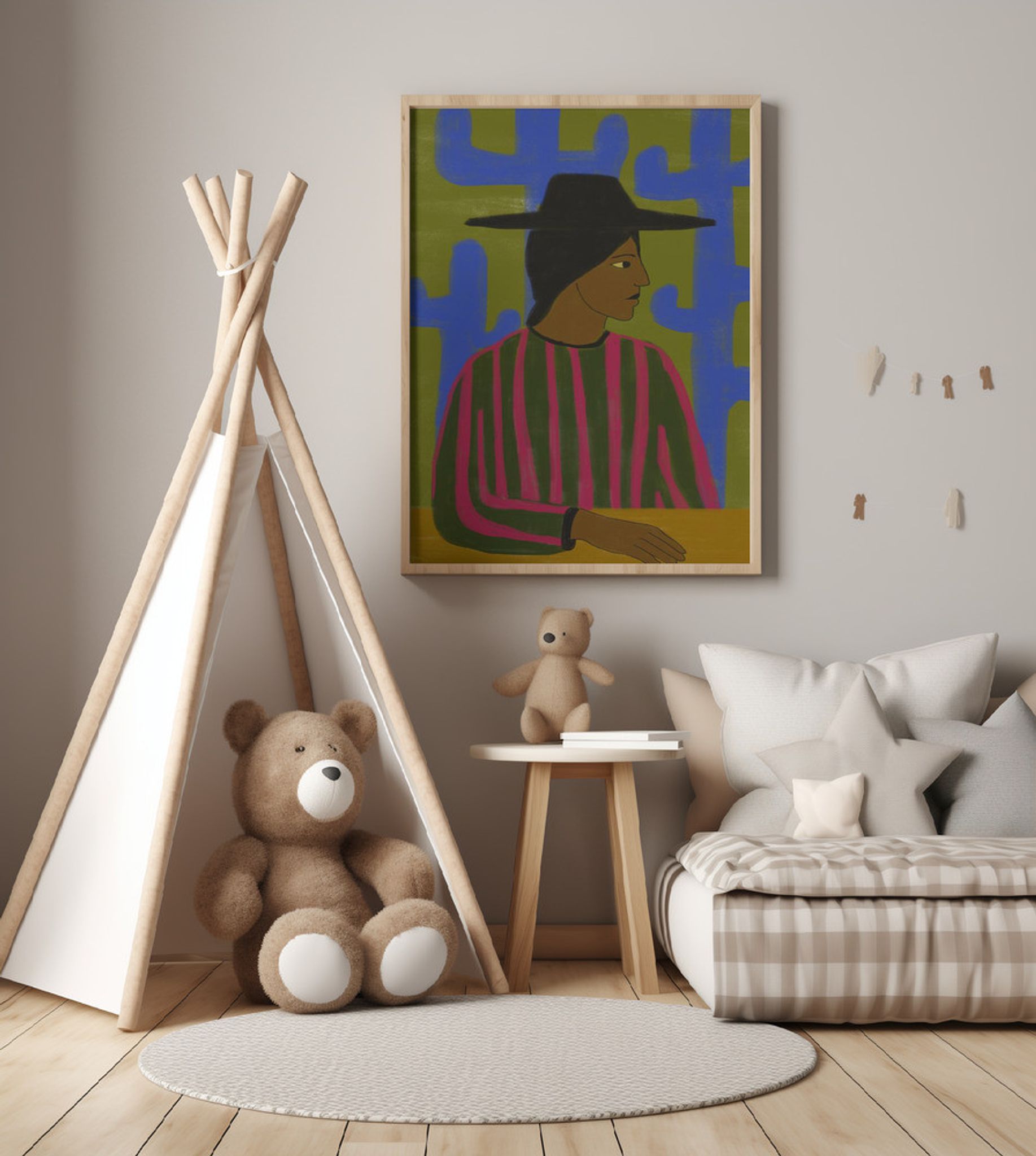 Southwestern Woman with Blue Cactus