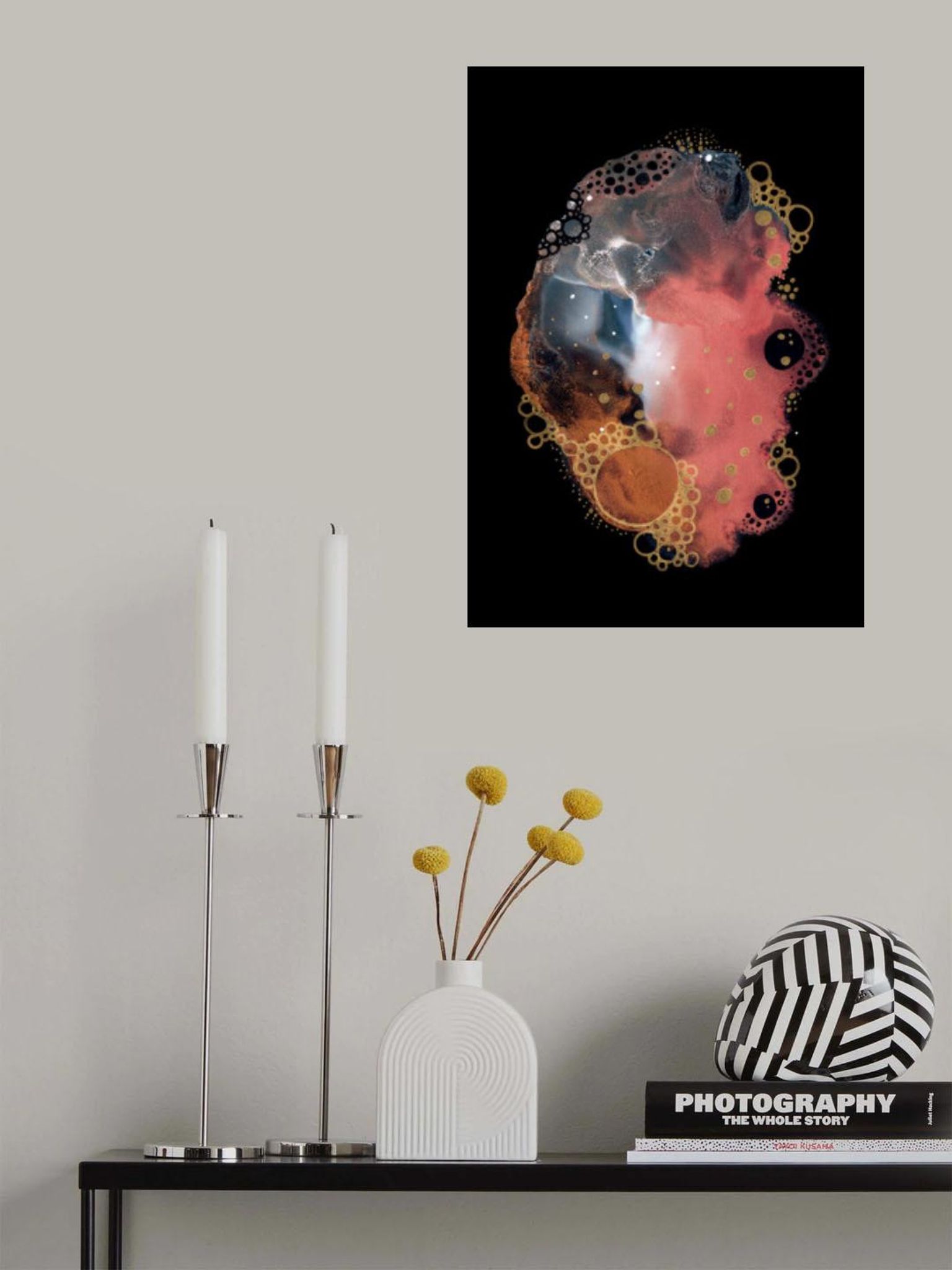 - Biografi: Amy Louise Baker är en innovativ konstnär, fängslande publik med fascinerande abstrakt och geometrisk konst. Hennes verk, som är känt för sina livfulla färger och dynamiska former, utforskar samspelet mellan form, textur och rörelse. Tillsammans med organisk fluiditet med strukturerad design bjuder varje verk in tittare till en livlig värld av fantasi och känslor. Oavsett om det är det virvlande kosmos eller den invecklade dansen av former, erbjuder Amys konst en unik visuell upplevelse, som återspeglar hennes passion för att trycka på kreativa gränser. Upptäck hennes samling och ge en touch av modern elegans till ditt utrymme.