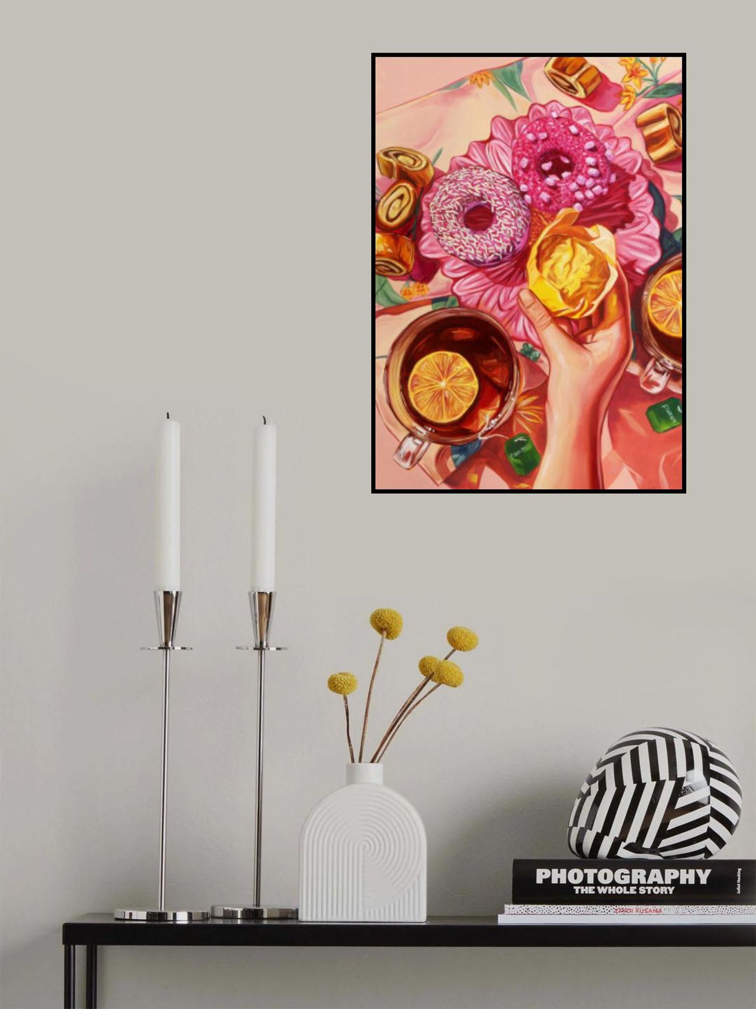 • Biografi: Anna Zdanowicz är en samtida konstnär med ett unikt fokus på levande, kulinariska-tema kompositioner. Hennes konstverk, känd för sina intrikata detaljer och djärva färger, fångar essensen av vardagliga stunder som delas över måltider. Med en blandning av realism och abstrakta element, Annas målningar inbjuder tittare att utforska texturer och mönster av mat och bordsinställningar i ett nytt ljus. Baserat i Ingen, har hon fått erkännande för sin distinkta stil som kombinerar traditionella och moderna tekniker. Utforska Annas portfölj och ge ett stänk av färg och glädje till ditt utrymme med hennes fängslande bitar.