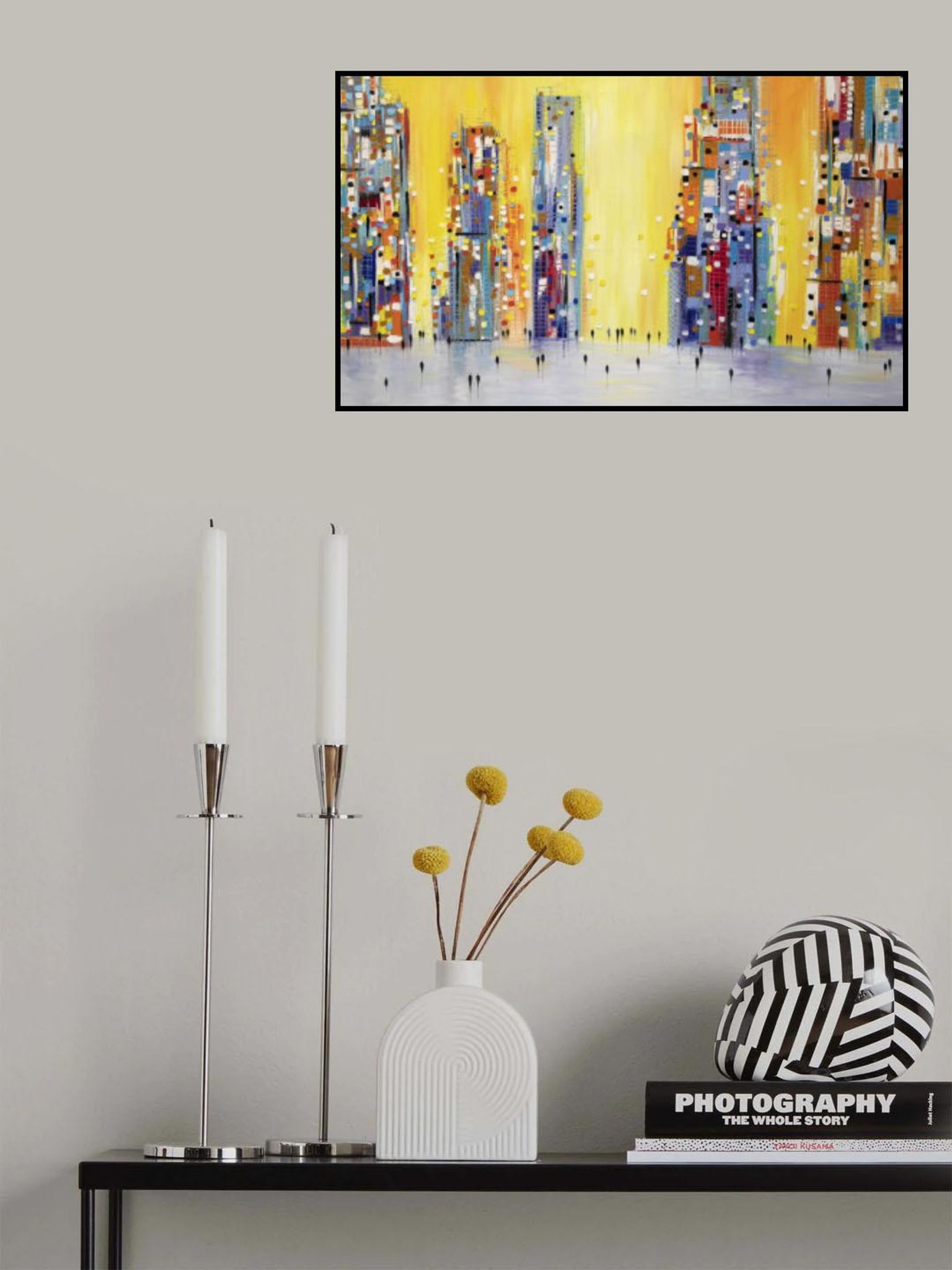 - Biografi: Född i Ryssland, Ekaterina Ermilphina bor och arbetar nu i New Jersey. Hon växte upp i Jalta, där hon studerade vid School of Art of F. Vasiliev, examen 1991. 1992 flyttade hon till Sankt Petersburg och förtjänade sin MFA från State Art and Industry Academy 1998. Stadens skönhet och kultur inspirerade henne att måla stadslandskap. År 2005 flyttade hon till USA, och hennes verk har varit med i solo- och grupputställningar på platser som The New York Museum of Contemporary Art, The Hunter Museum of American Art, och Artspace Warehouse Los Angeles. Noterbara samlare inkluderar Kelly Clarkson. Ekaterina abstrakta målningar kombinerar tillämpa och ta bort oljemålning med en palettkniv. Hennes stadsbilder är inspirerade av skylines som de av Manhattan och Chicago. Genom att fokusera på hur ljus interagerar med ämnet, skapar hon energifyllda landskap och porträtt, ritar tittare in i verket genom sammanslagningen av otaliga prickar av färg.
