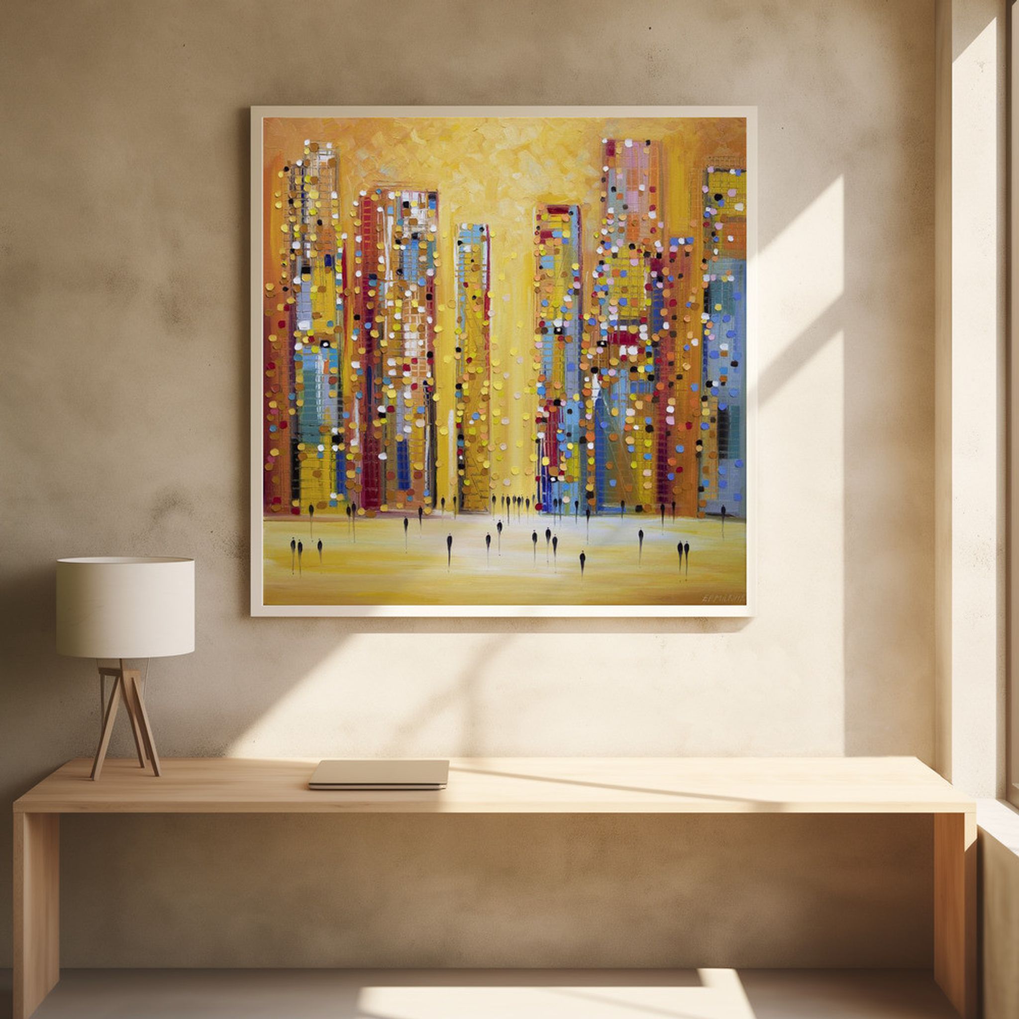 - Biografi: Född i Ryssland, Ekaterina Ermilphina bor och arbetar nu i New Jersey. Hon växte upp i Jalta, där hon studerade vid School of Art of F. Vasiliev, examen 1991. 1992 flyttade hon till Sankt Petersburg och förtjänade sin MFA från State Art and Industry Academy 1998. Stadens skönhet och kultur inspirerade henne att måla stadslandskap. År 2005 flyttade hon till USA, och hennes verk har varit med i solo- och grupputställningar på platser som The New York Museum of Contemporary Art, The Hunter Museum of American Art, och Artspace Warehouse Los Angeles. Noterbara samlare inkluderar Kelly Clarkson. Ekaterina abstrakta målningar kombinerar tillämpa och ta bort oljemålning med en palettkniv. Hennes stadsbilder är inspirerade av skylines som de av Manhattan och Chicago. Genom att fokusera på hur ljus interagerar med ämnet, skapar hon energifyllda landskap och porträtt, ritar tittare in i verket genom sammanslagningen av otaliga prickar av färg.