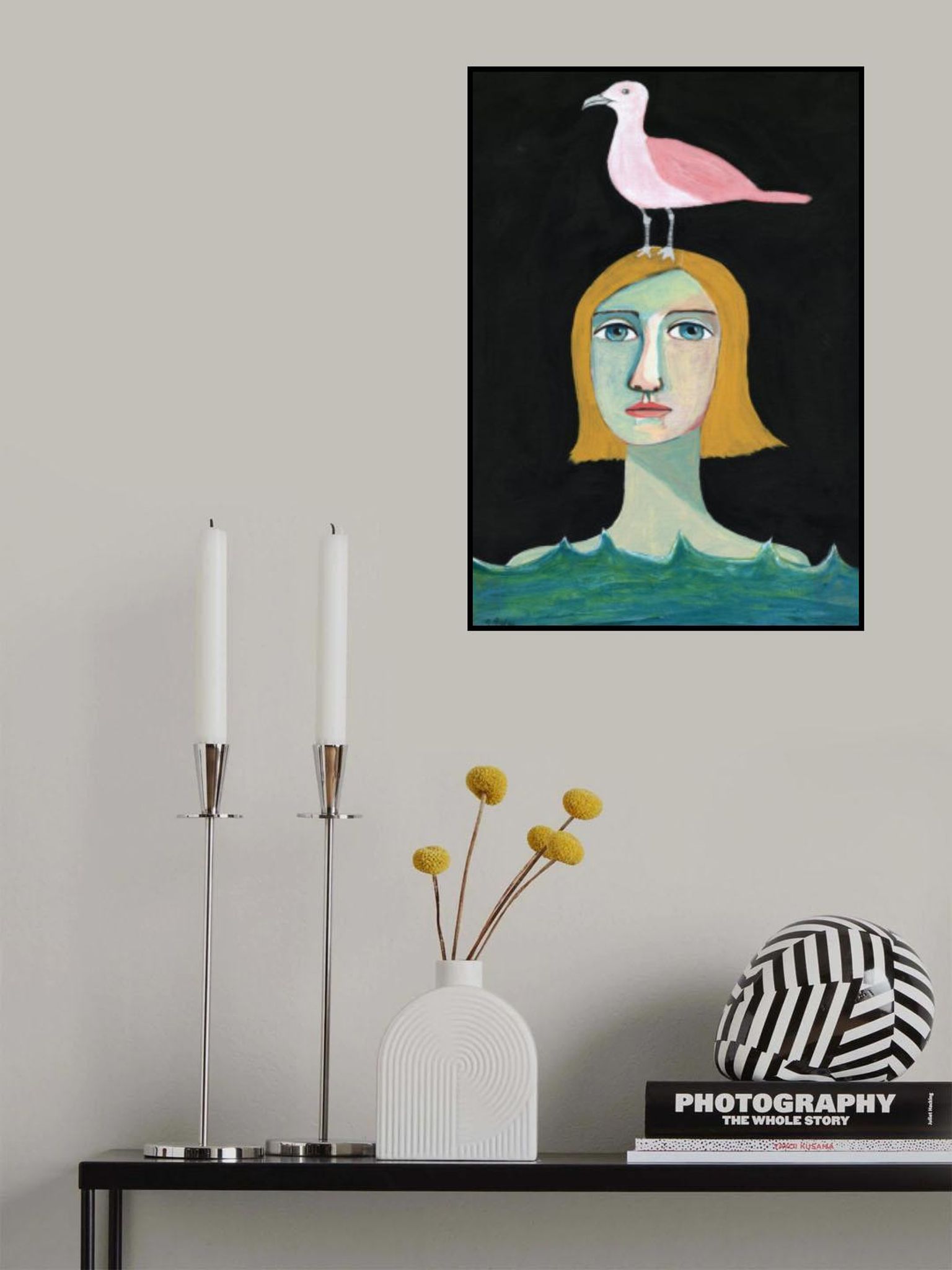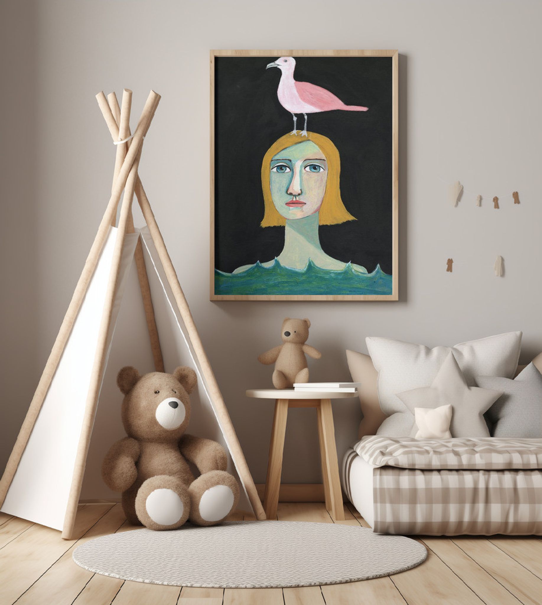 Swimming Girl with Pink Seagull