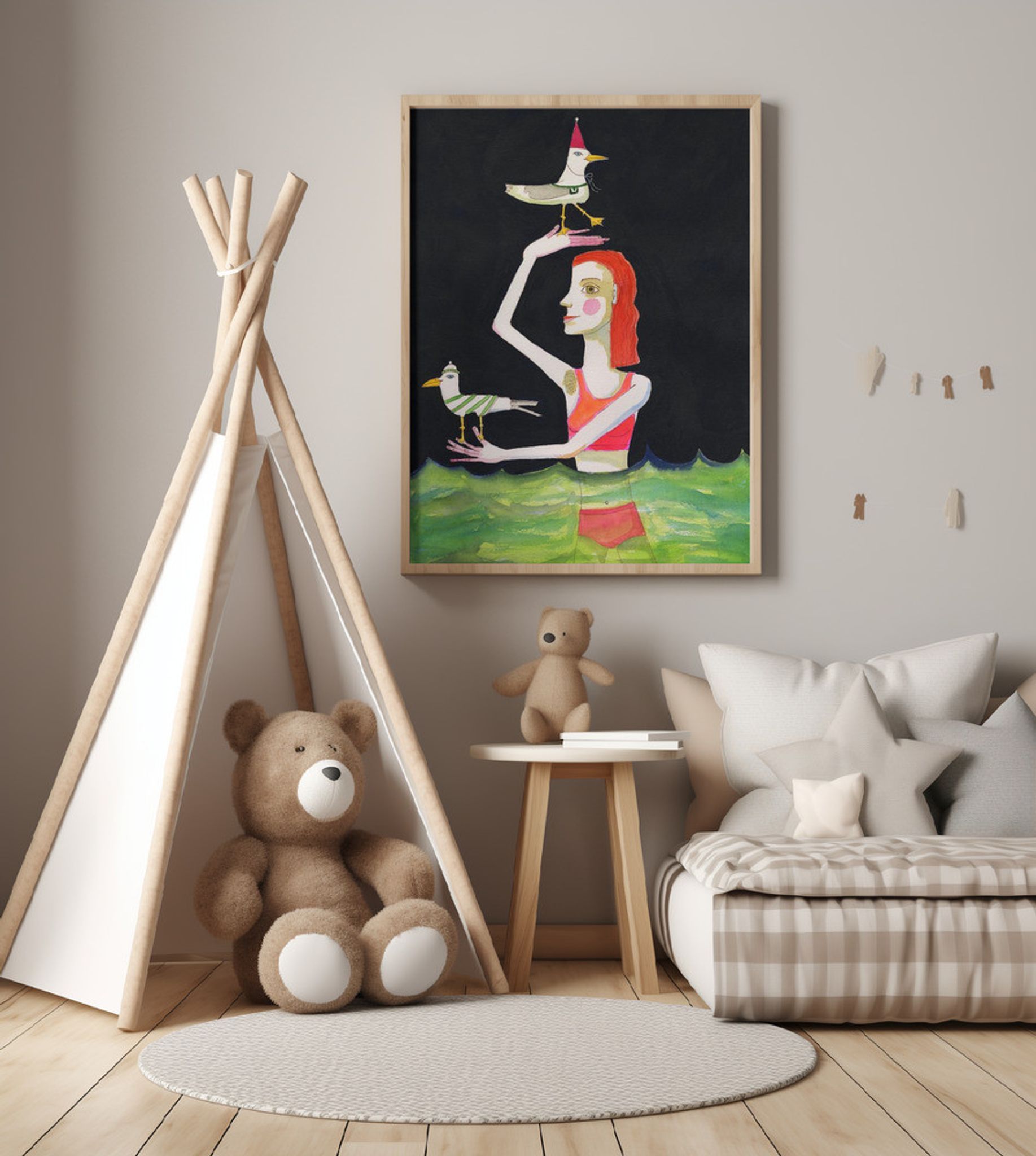 Swimming Lady with birds
