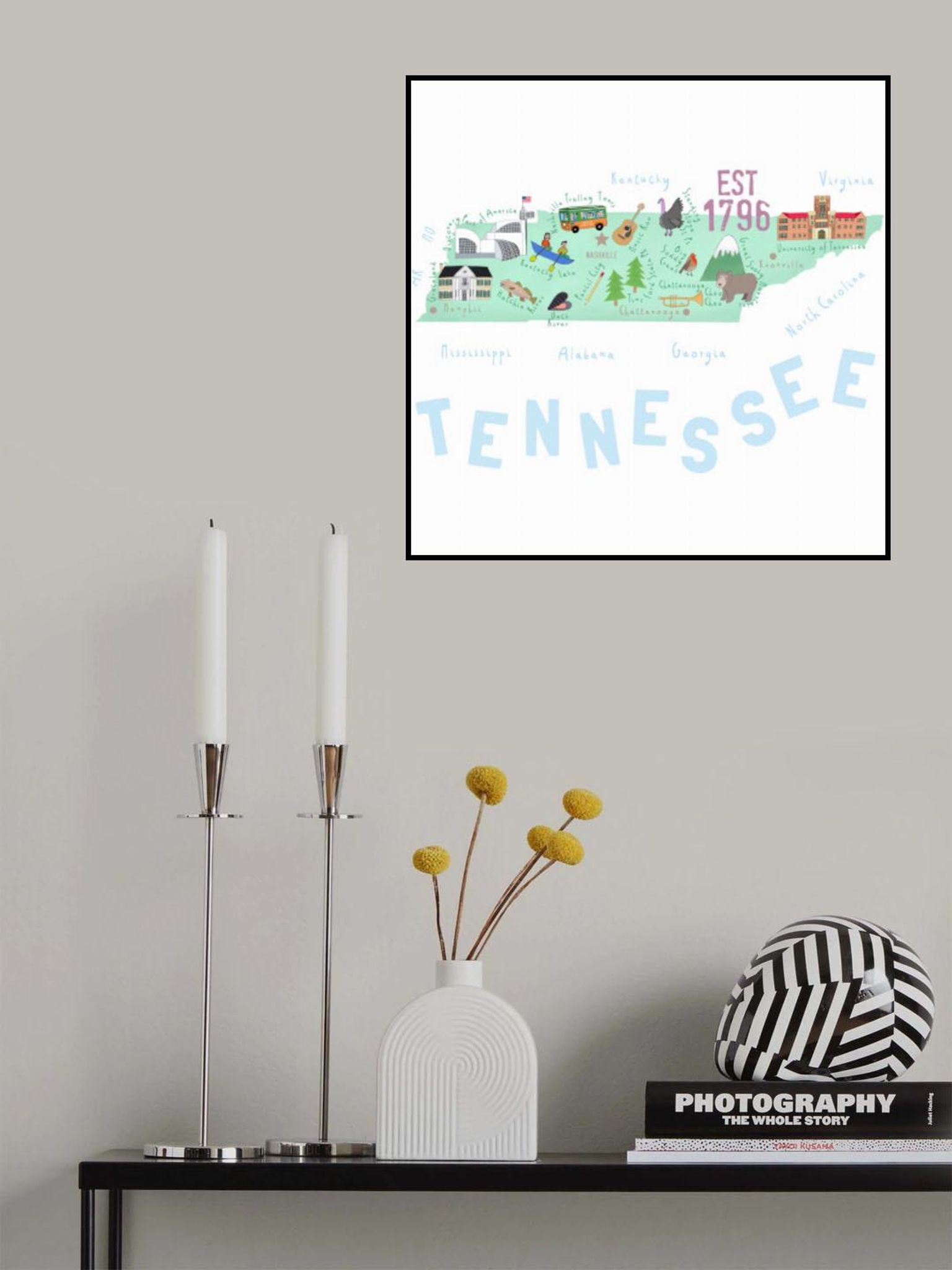Tennessee Map Illustrated by Map Artist Carla Daly