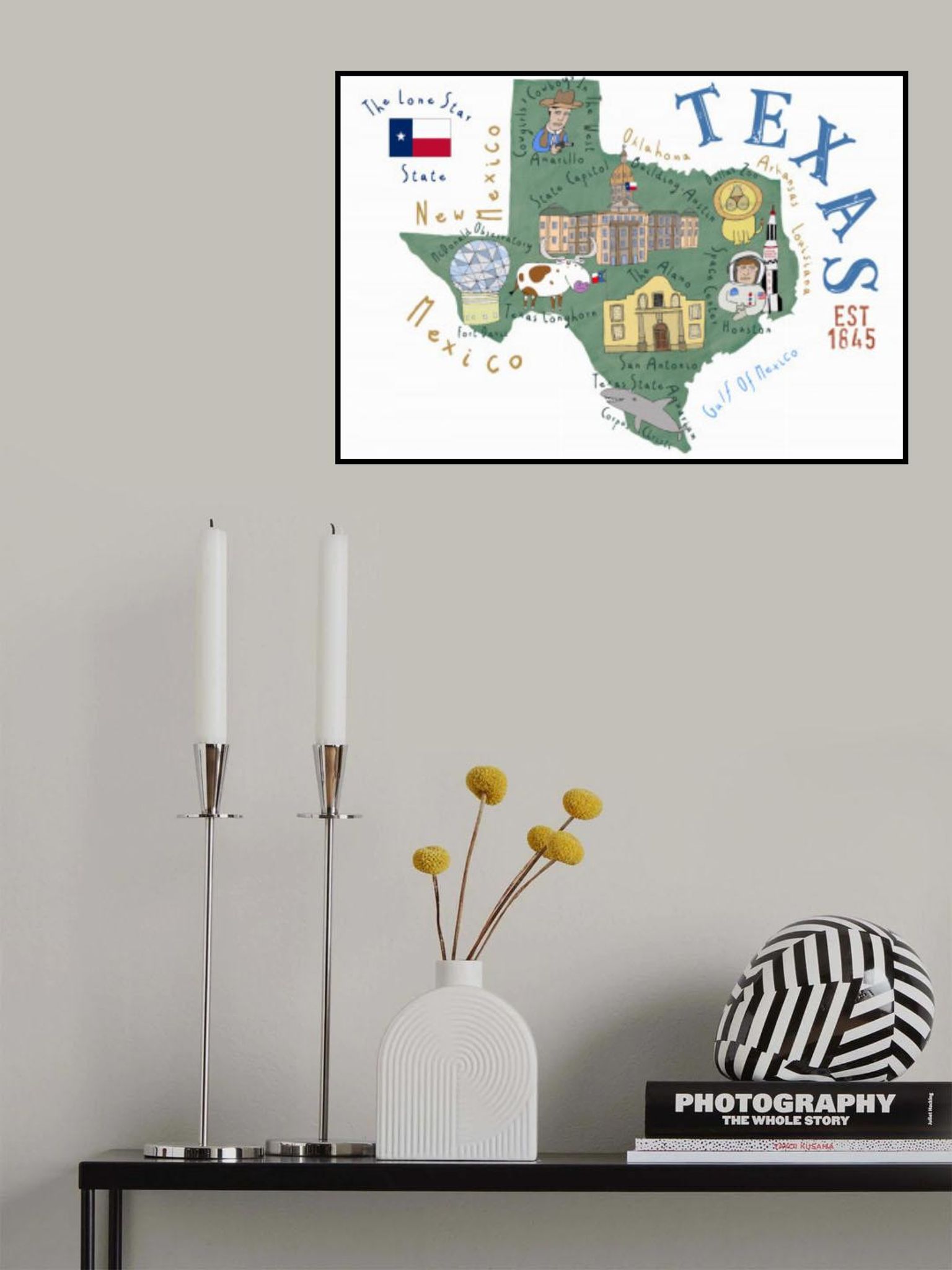 Texas State Map by Illustrated by Artist Carla Daly