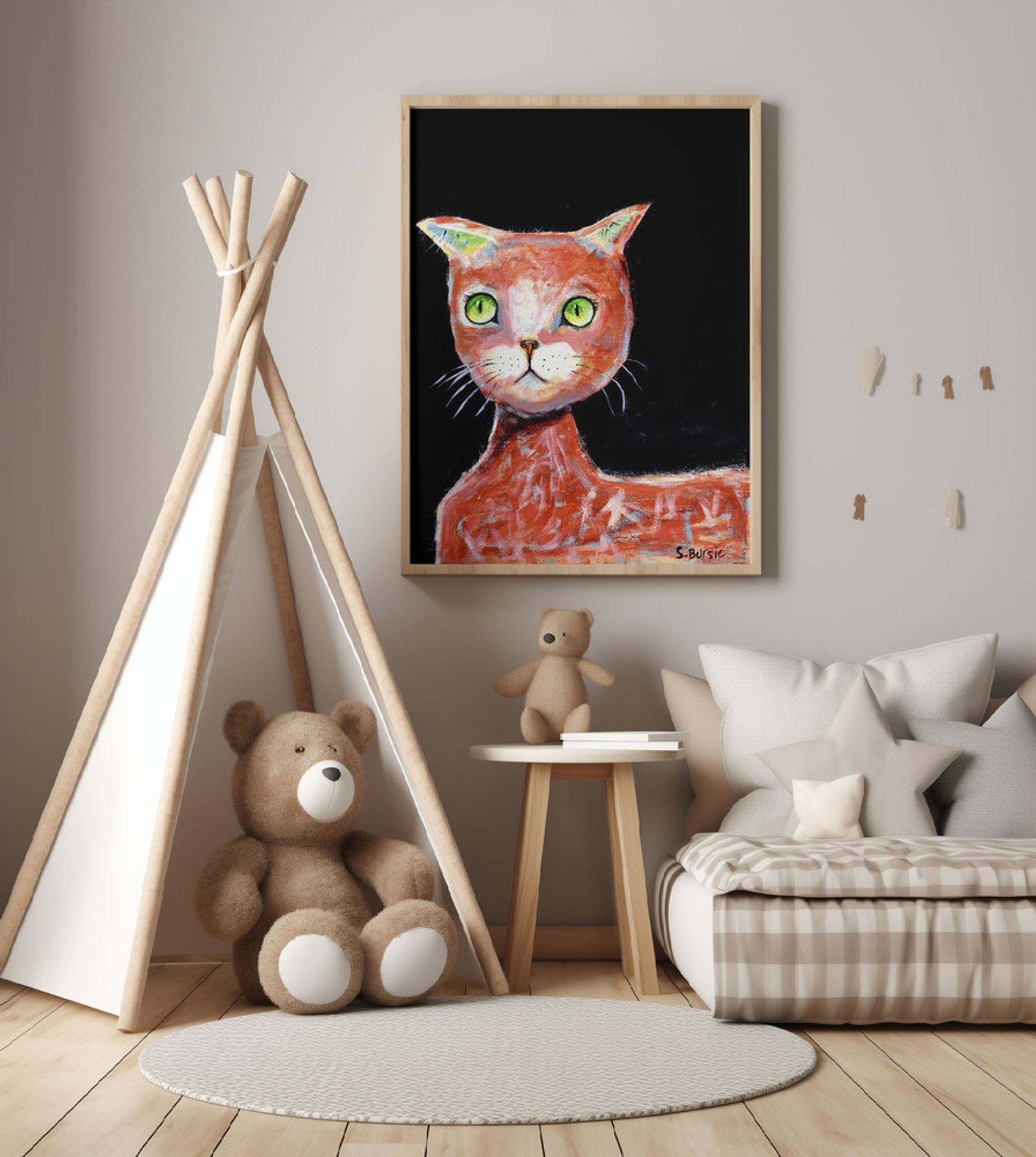 - Biografi: Sharyn Bursic är en självlärd, naiv bildlig konstnär vars verk fångar skönheten och humorn i vardagen. Med ett lekfullt och intuitivt tillvägagångssätt, skapar Sharyn livfulla, känsloladdade målningar med hjälp av en rad olika medier, inklusive akvarell, akryl och olja. Hennes arbete är fyllt med nyckfulla men hjärtliga skildringar av vardagliga ögonblick – oavsett om det är en katt som ligger på knä, människor som njuter av en lugn kväll med ett glas vin, eller djur fångas i en uppriktig, avslappnad stund. Sharyns distinkta stil ger en känsla av värme och charm till bekanta scener, ofta infunderad med en subtil känsla av humor. Hennes figurativa verk är både intima och tillgängliga, inbjudande tittare att se de extraordinära i de enkla, dagliga aktiviteter som definierar våra liv. Förutom hennes bildliga bitar, utforskar hon också abstrakt målning, där hennes lekfulla användning av färg och form fortsätter att återspegla den glädje hon finner i världen runt henne.