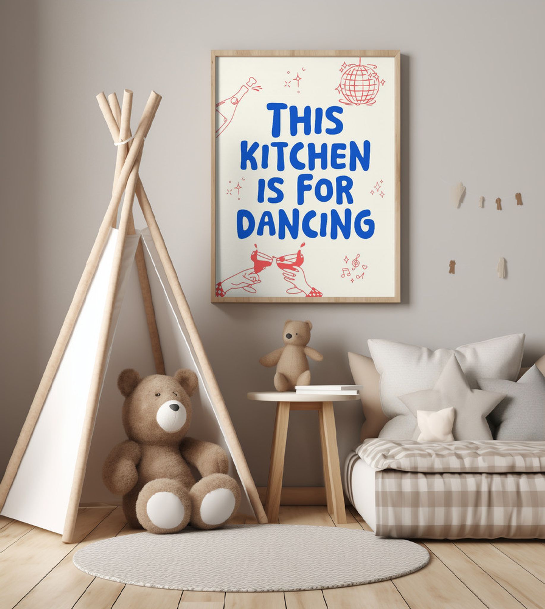 This kitchen is for dancing - creme/blue