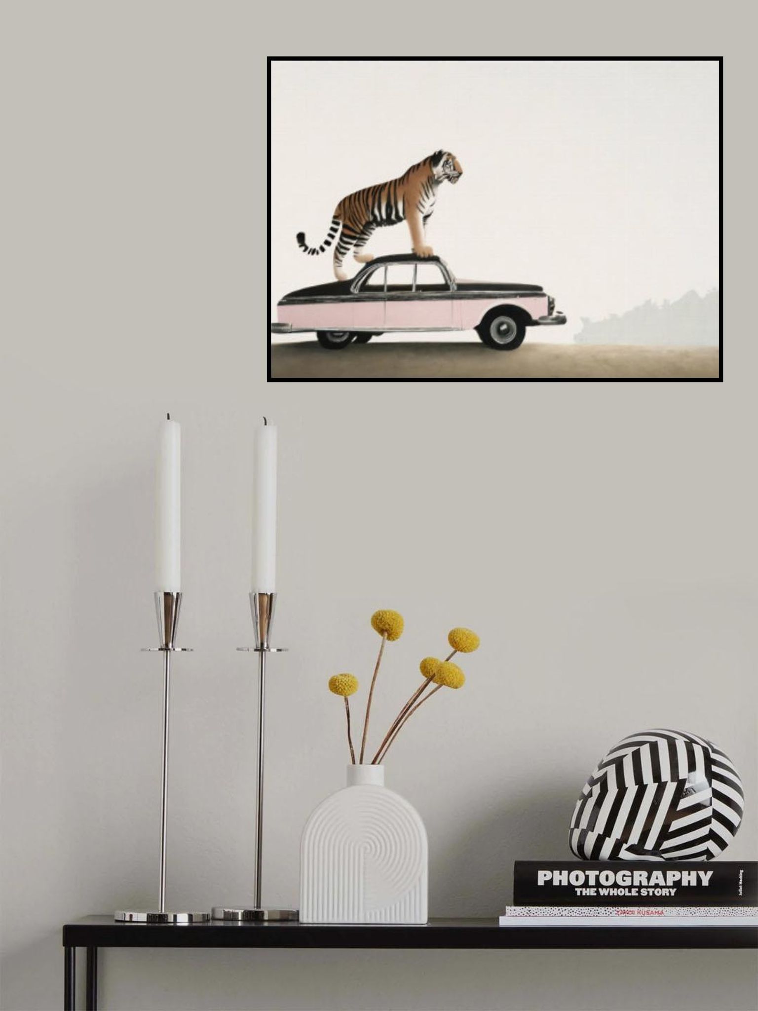 Tiger om a car roof