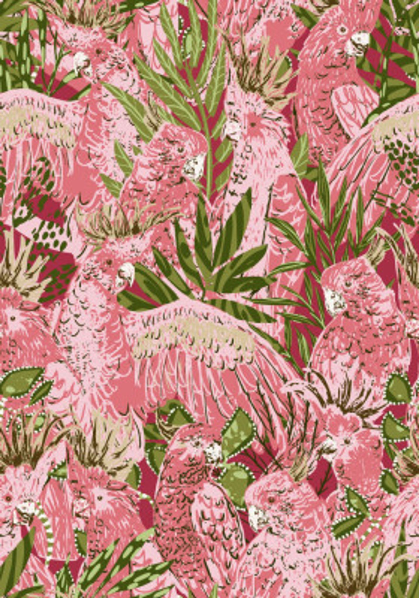 Tropical lounge pink Cockatoos pattern