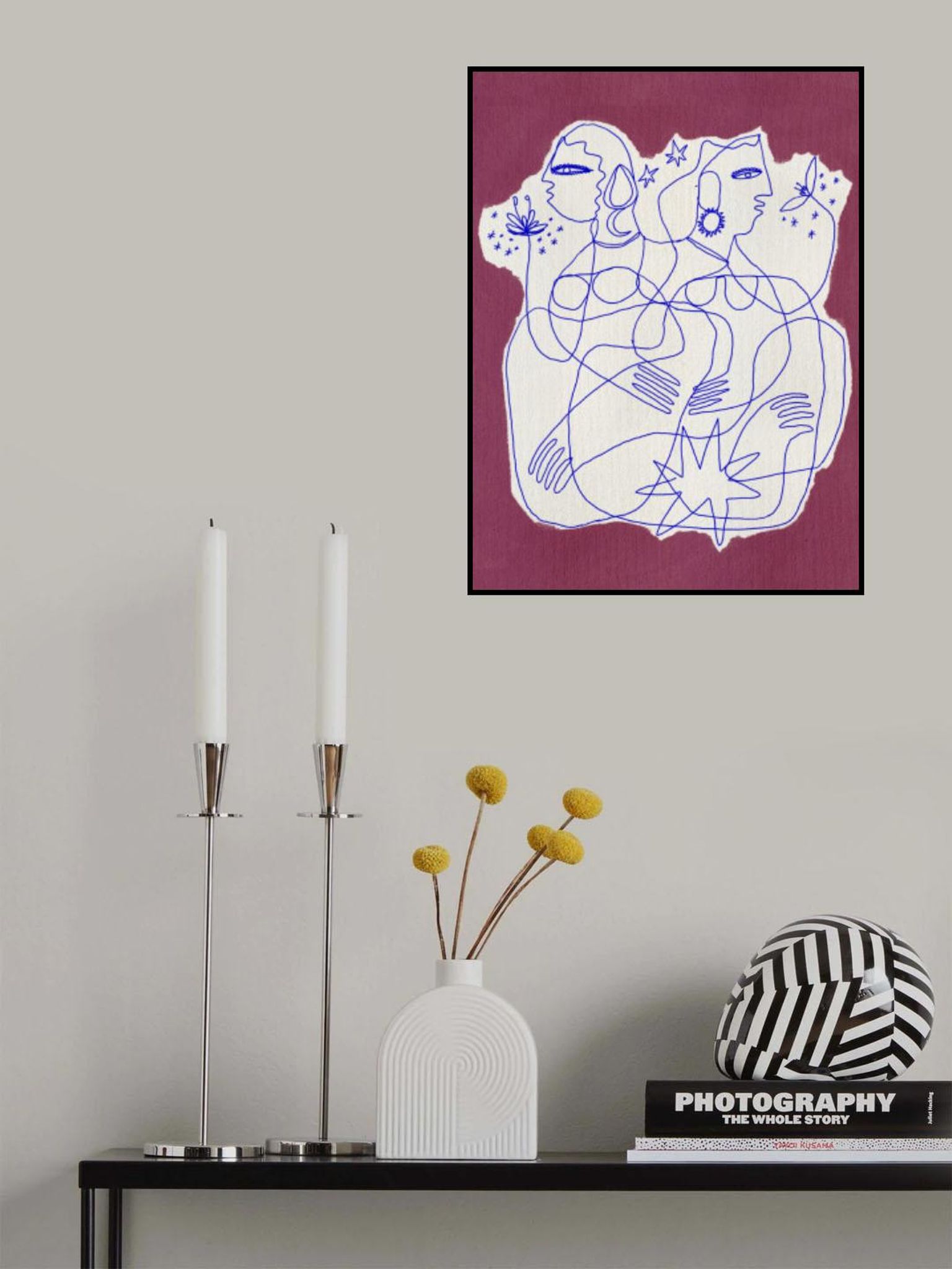 - Biografi: Shatha Al Dafai är en samtida konstnär från Omani känd för sina minimalistiska men livfulla konstverk som utforskar teman som koppling, identitet och självupptäckt. Hennes unika stil blandar abstrakta former, linjekonst och lekfulla illustrationer och skapar visuellt slående verk som genljuder globalt. Förutom konsttryck erbjuder hon unika produkter som gör hennes konst tillgänglig i vardagen. Med ett starkt fokus på berättande genom konst fortsätter Shatha Al Dafai att inspirera och knyta kontakt med sin publik genom meningsfulla, tidlösa skapelser.