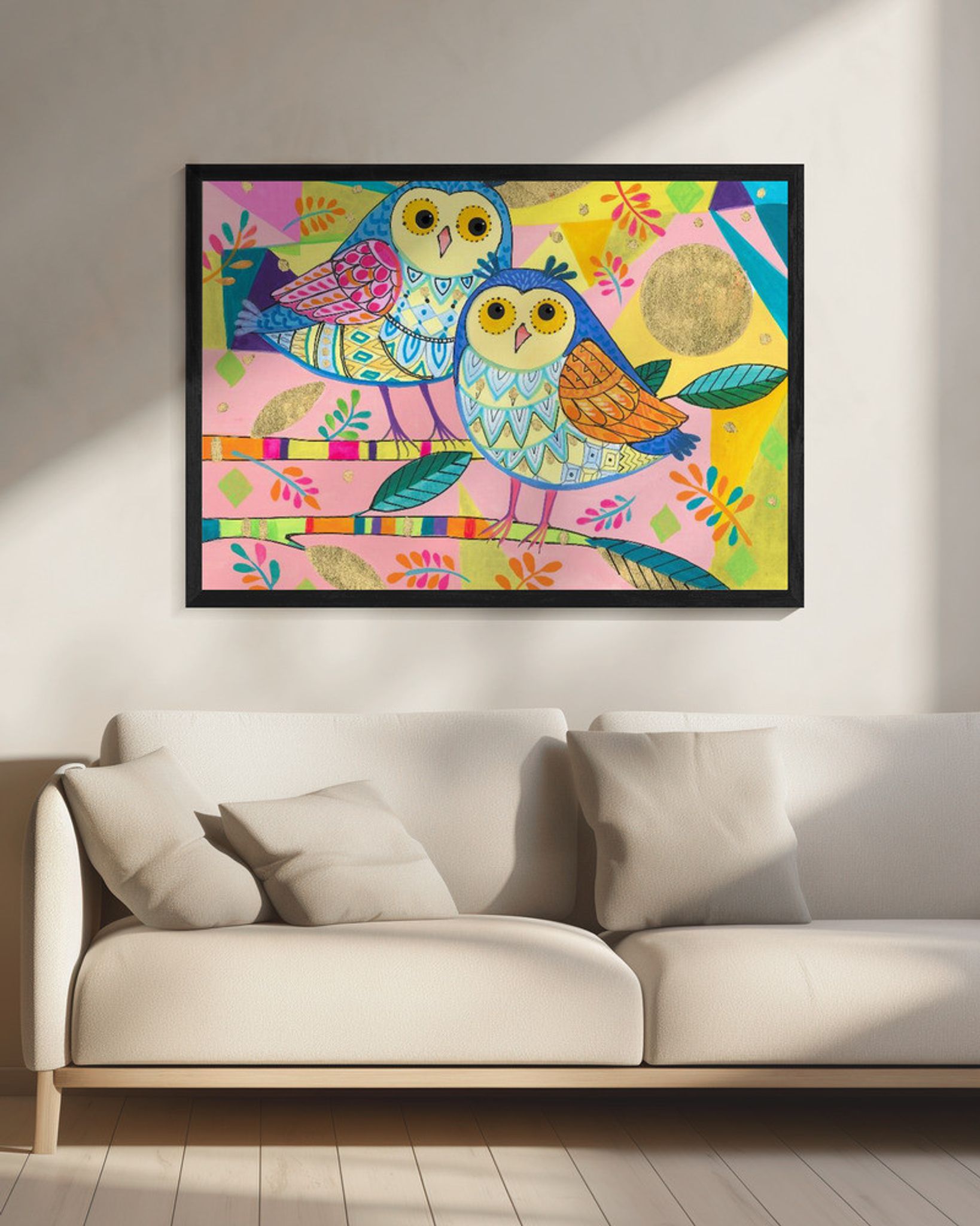 Two Owls Sit on Branches