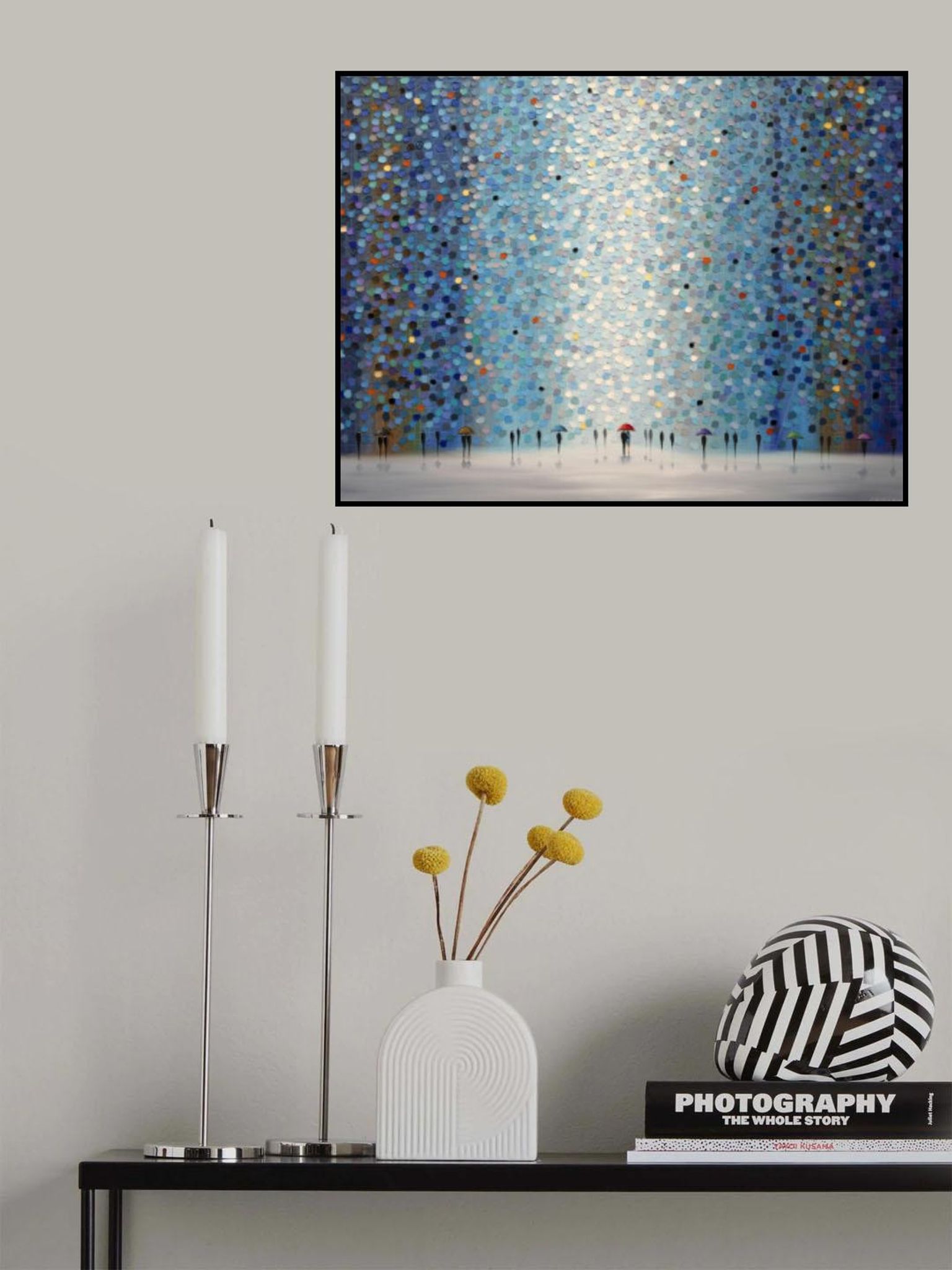 - Biografi: Född i Ryssland, Ekaterina Ermilphina bor och arbetar nu i New Jersey. Hon växte upp i Jalta, där hon studerade vid School of Art of F. Vasiliev, examen 1991. 1992 flyttade hon till Sankt Petersburg och förtjänade sin MFA från State Art and Industry Academy 1998. Stadens skönhet och kultur inspirerade henne att måla stadslandskap. År 2005 flyttade hon till USA, och hennes verk har varit med i solo- och grupputställningar på platser som The New York Museum of Contemporary Art, The Hunter Museum of American Art, och Artspace Warehouse Los Angeles. Noterbara samlare inkluderar Kelly Clarkson. Ekaterina abstrakta målningar kombinerar tillämpa och ta bort oljemålning med en palettkniv. Hennes stadsbilder är inspirerade av skylines som de av Manhattan och Chicago. Genom att fokusera på hur ljus interagerar med ämnet, skapar hon energifyllda landskap och porträtt, ritar tittare in i verket genom sammanslagningen av otaliga prickar av färg.