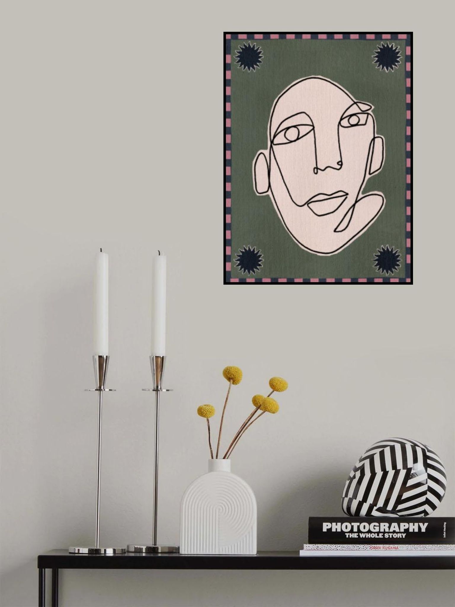 - Biografi: Shatha Al Dafai är en samtida konstnär från Omani känd för sina minimalistiska men livfulla konstverk som utforskar teman som koppling, identitet och självupptäckt. Hennes unika stil blandar abstrakta former, linjekonst och lekfulla illustrationer och skapar visuellt slående verk som genljuder globalt. Förutom konsttryck erbjuder hon unika produkter som gör hennes konst tillgänglig i vardagen. Med ett starkt fokus på berättande genom konst fortsätter Shatha Al Dafai att inspirera och knyta kontakt med sin publik genom meningsfulla, tidlösa skapelser.