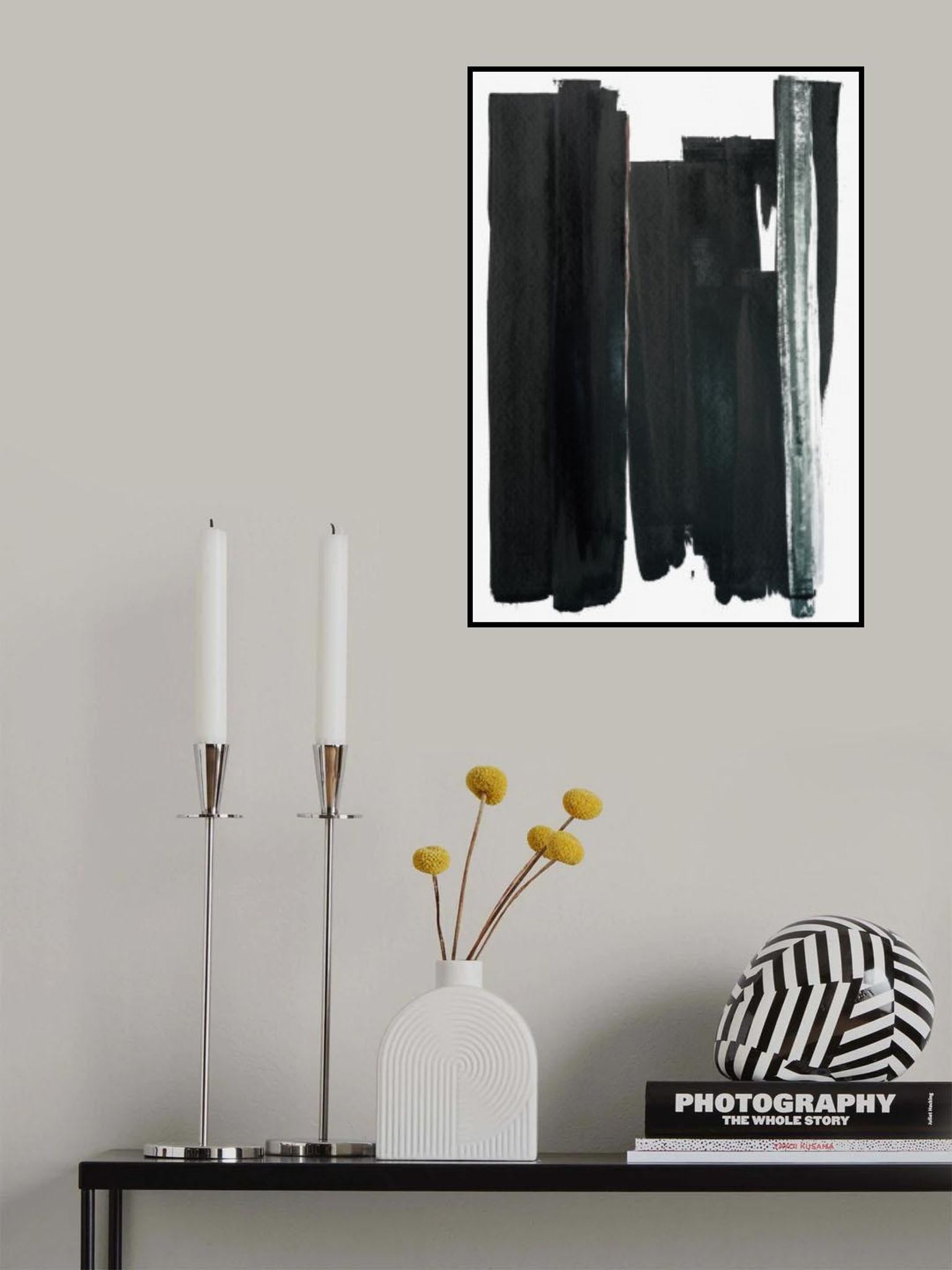 Vertical Black And White Brushstrokes