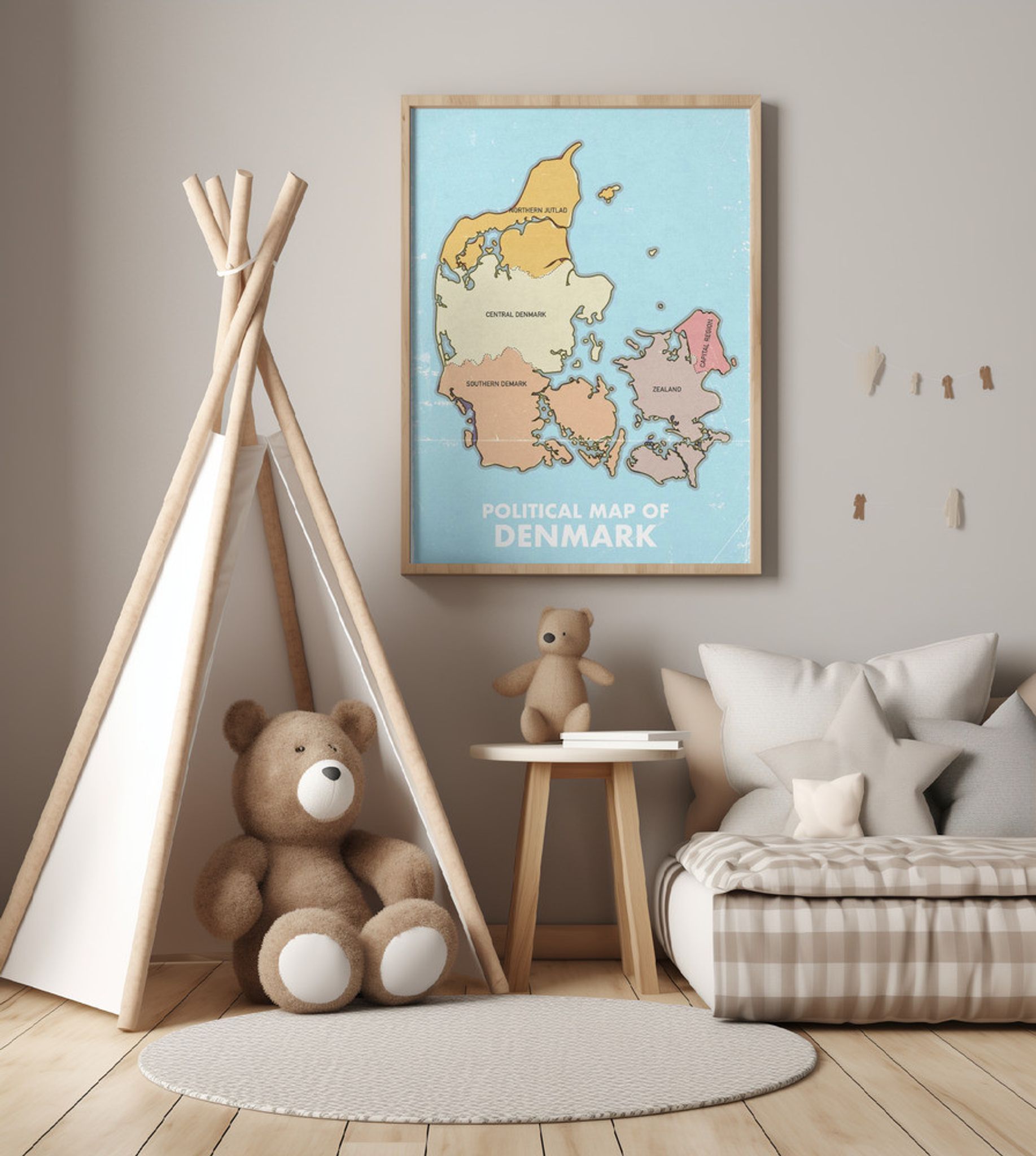 Vintage Denmark Political Map