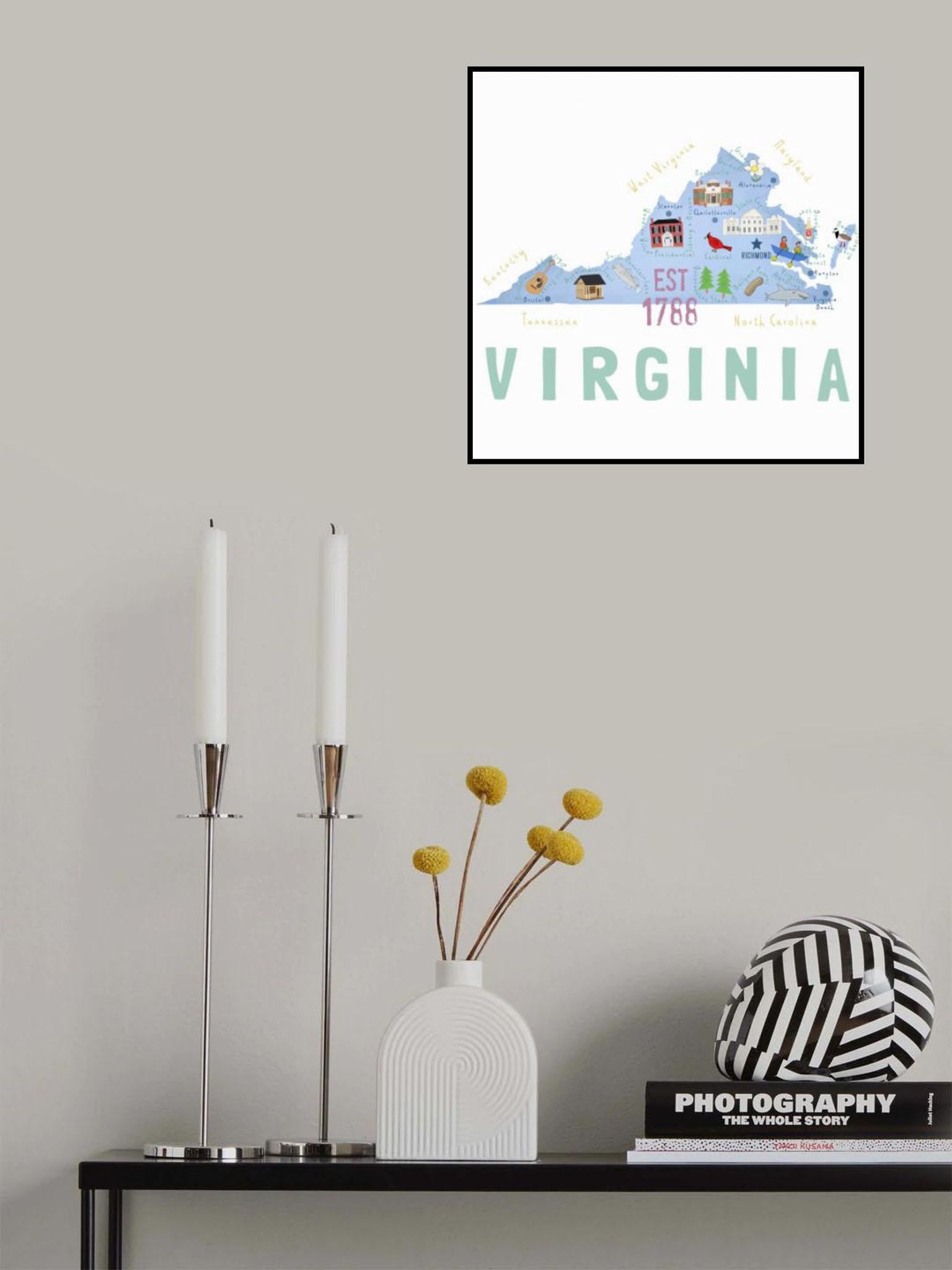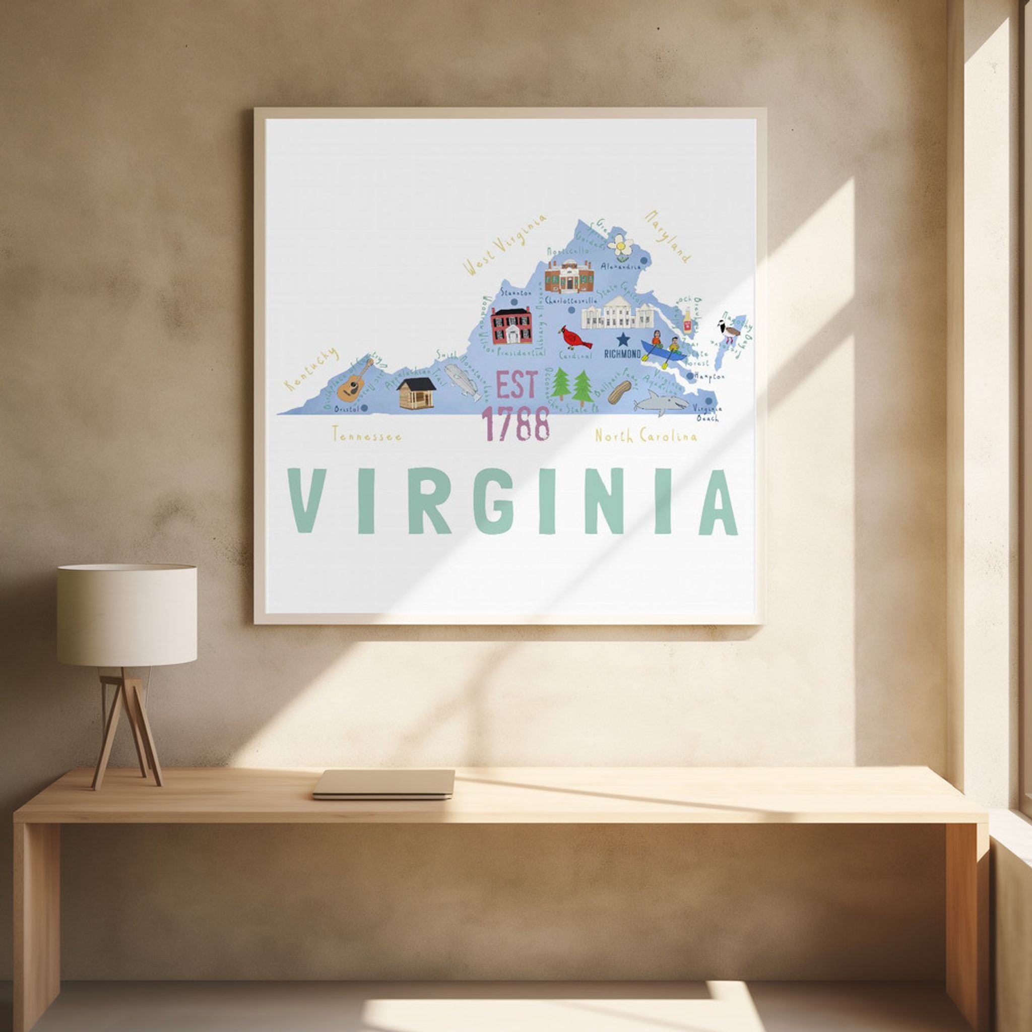Virgina State Illustrated Map by Artist Carla Daly
