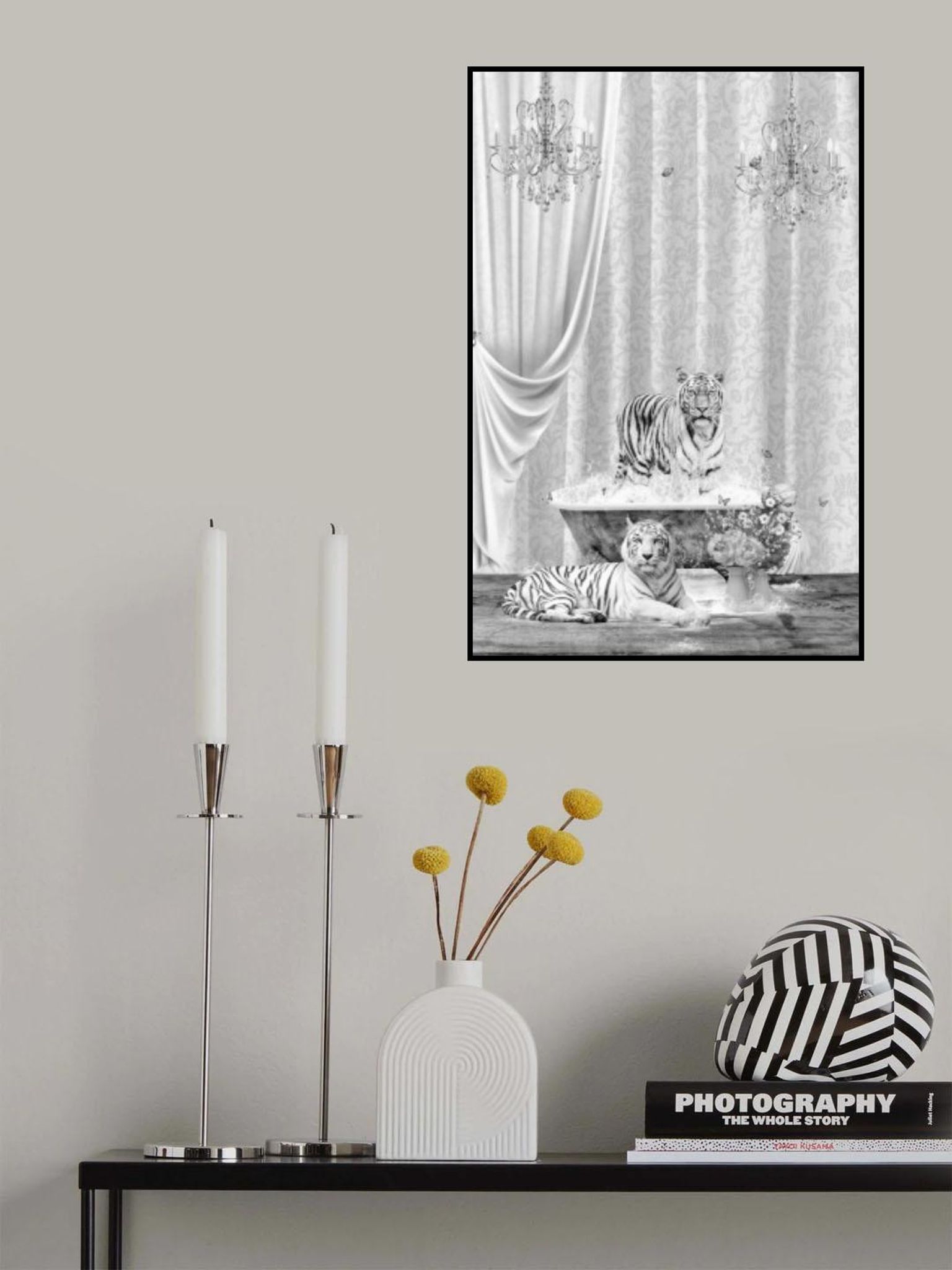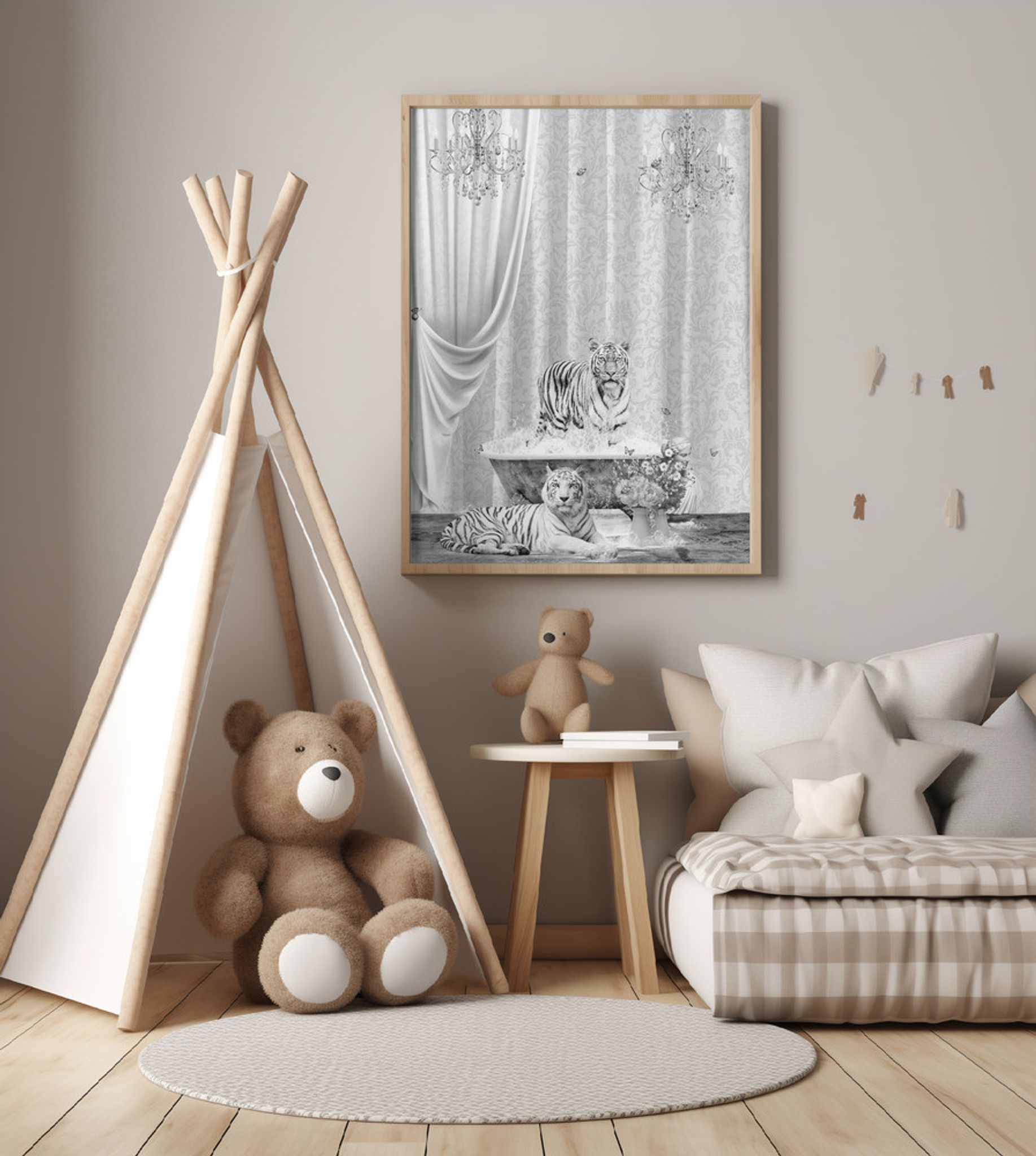 White Tigers & Bubbles Black & White