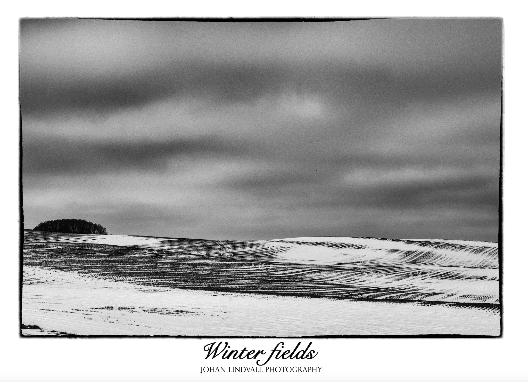 Winter fields av Johan Lindvall är ett härligt svartvitt fotografi över de skånska ängarna vintertid. Österlens vackra vyer synliggörs magnifikt i detta fotografi.