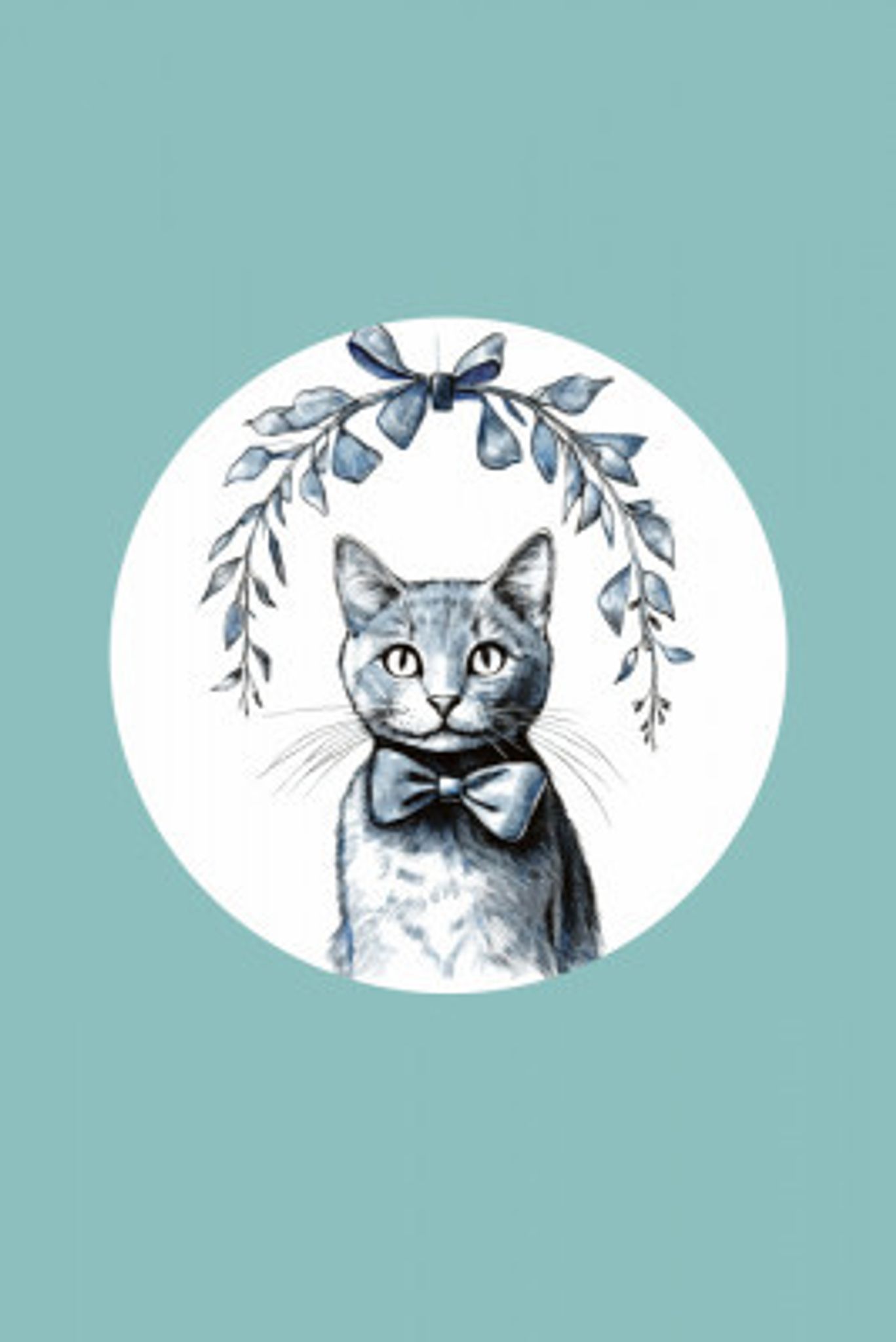 Winter Scenes: Holiday Cat With Blue Bow With Teal Green Background 1 1