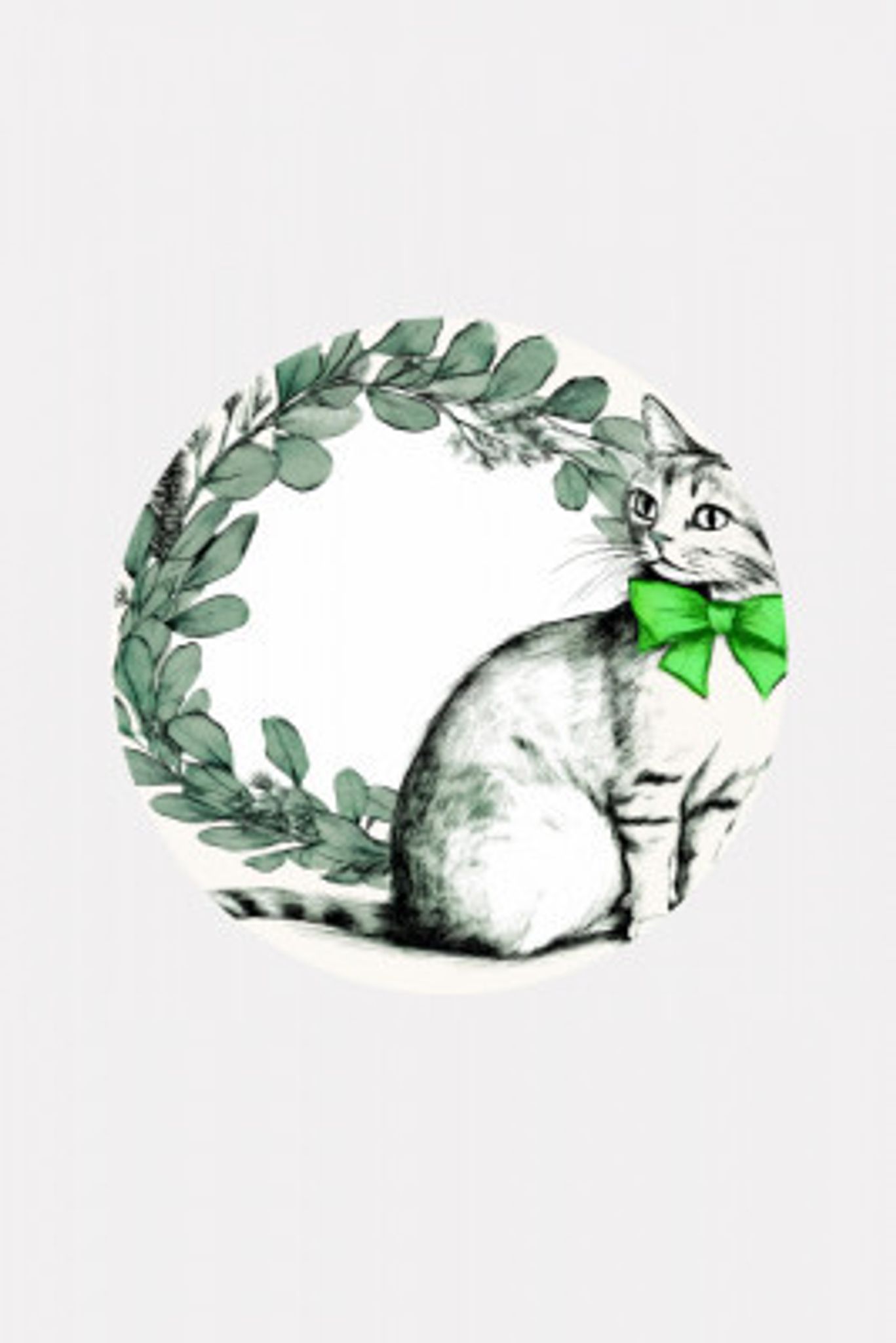Winter Scenes: Holiday Cat With Eucalyptus Wreath 1