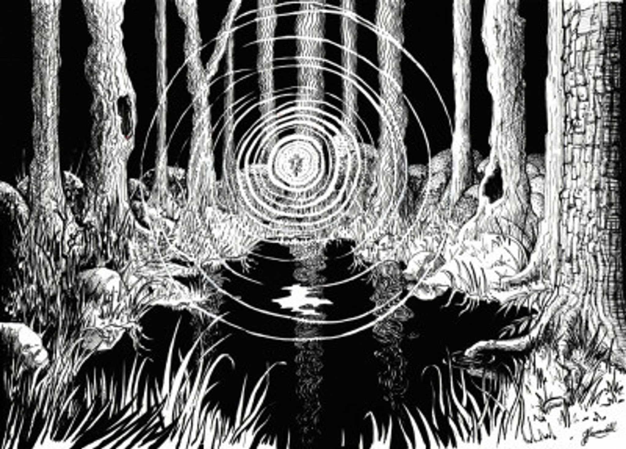 Wisp. Folk Lore Will'o the Lantern in The Woods Ink Drawing.