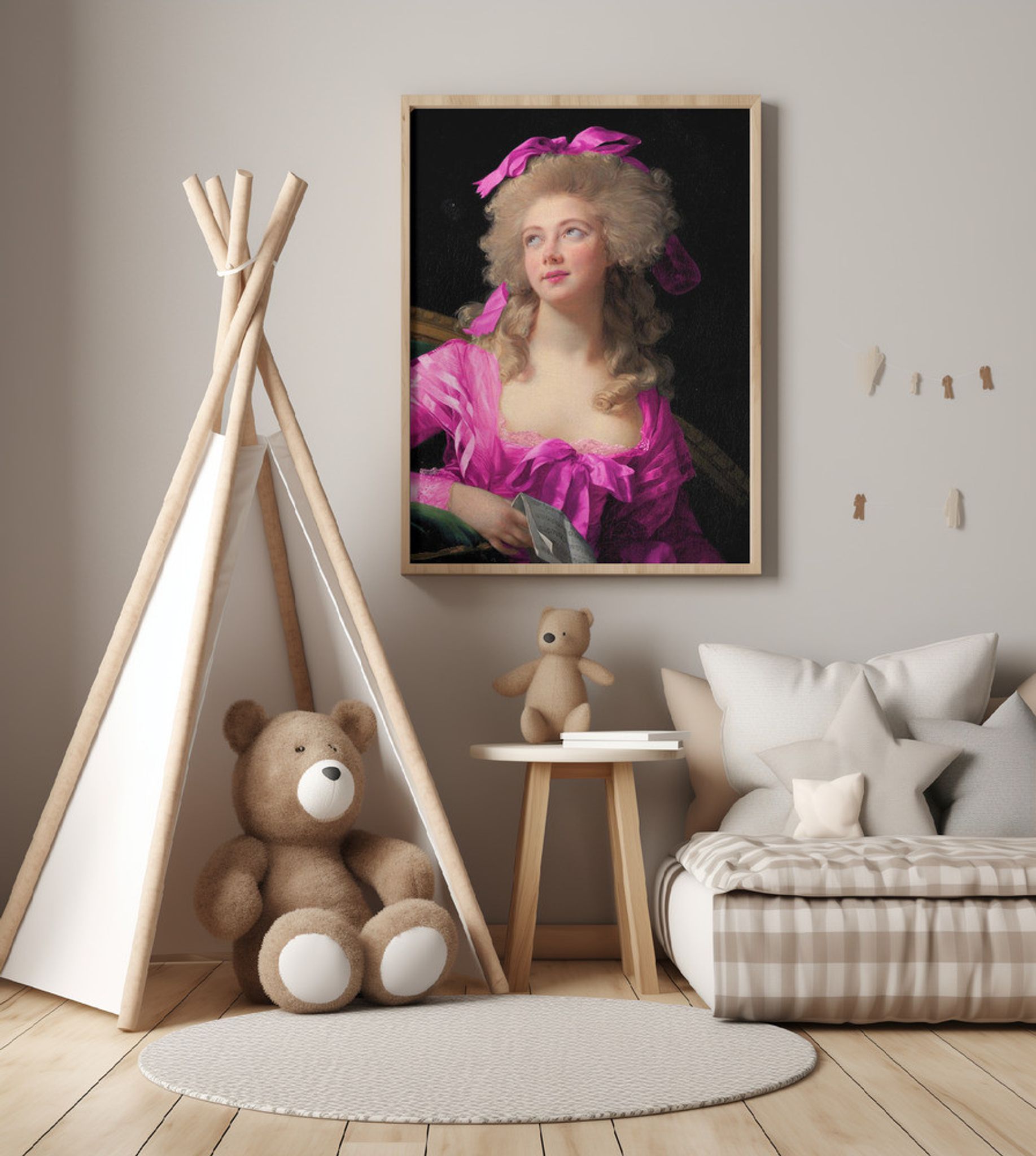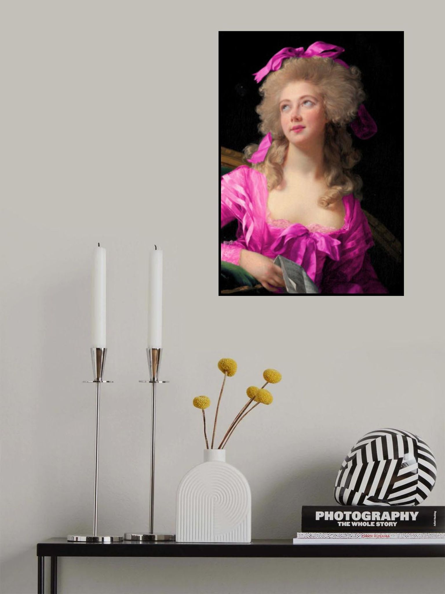 Woman in a Vibrant Pink Gown and Ribbon